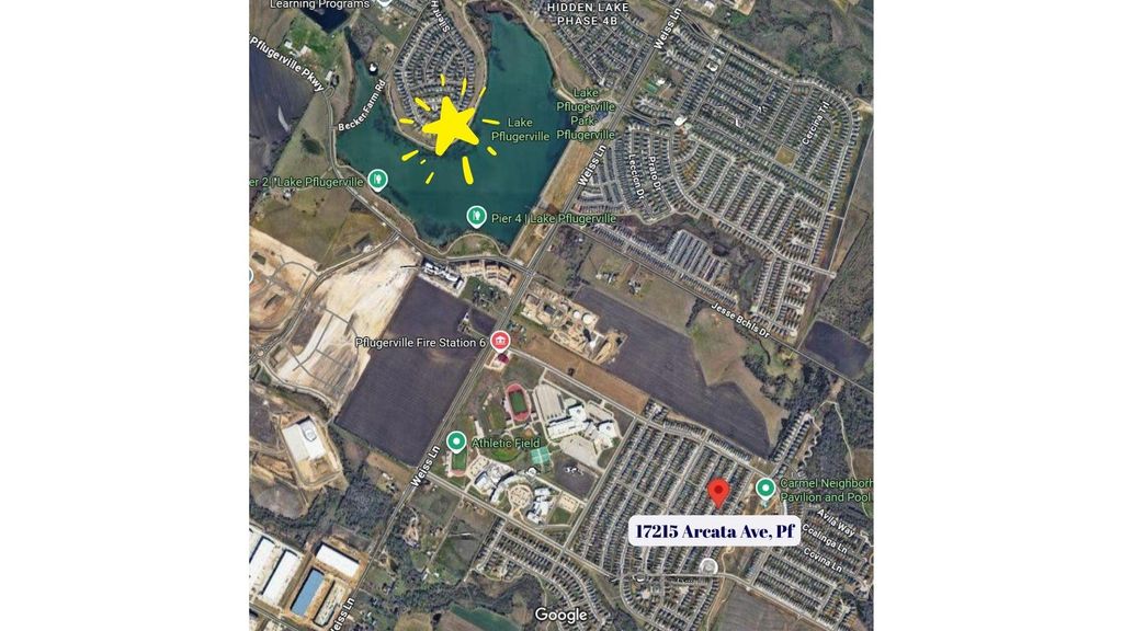 Discover the perfect blend of comfort, convenience, and style at 17215 Arcata Ave, a beautifully maintained single-story home in Pflugerville's highly desirable Carmel community. Built in 2019 and offering 1,854 sq. ft. of thoughtfully designed living space, this 3-bedroom, 2-bathroom residence also includes a versatile office/flex room"”ideal for today's modern lifestyle. Step inside to an open-concept floor plan featuring soaring ceilings, rich wood-style flooring, and abundant natural light. The gourmet kitchen is a true centerpiece with granite countertops, stainless steel appliances, custom backsplash, and a spacious island with breakfast bar seating"”designed for both everyday living and entertaining. The dedicated office/flex space provides endless possibilities for working from home, study, or creative hobbies. Retreat to the private primary suite with its double vanity, walk-in shower, and expansive closet, while two additional bedrooms offer comfort and flexibility for family or guests. The backyard is an entertainer's dream. Enjoy an extended covered patio with ceiling fan, the perfect spot for grilling or dining outdoors. A pergola, fire pit, and storage shed add to the functionality and charm of the private, fenced yard. This home is smart-enabled, giving you control of lights, fans, thermostat, sprinklers, and garage door right from your phone or voice assistant. Community & Location Highlights: All three zoned schools (Carpenter Elementary, Bohls Middle, Weiss High) are within walking distance at the front of the neighborhood. Lake Pflugerville is just minutes away for fishing, kayaking, and trails. A new HEB nearby makes errands simple. Carmel residents enjoy amenities including a pool, sport courts, playgrounds, and walking trails. Move-in ready, stylishly appointed, and ideally located"”17215 Arcata Ave offers the lifestyle you've been waiting for. Schedule your private showing today!