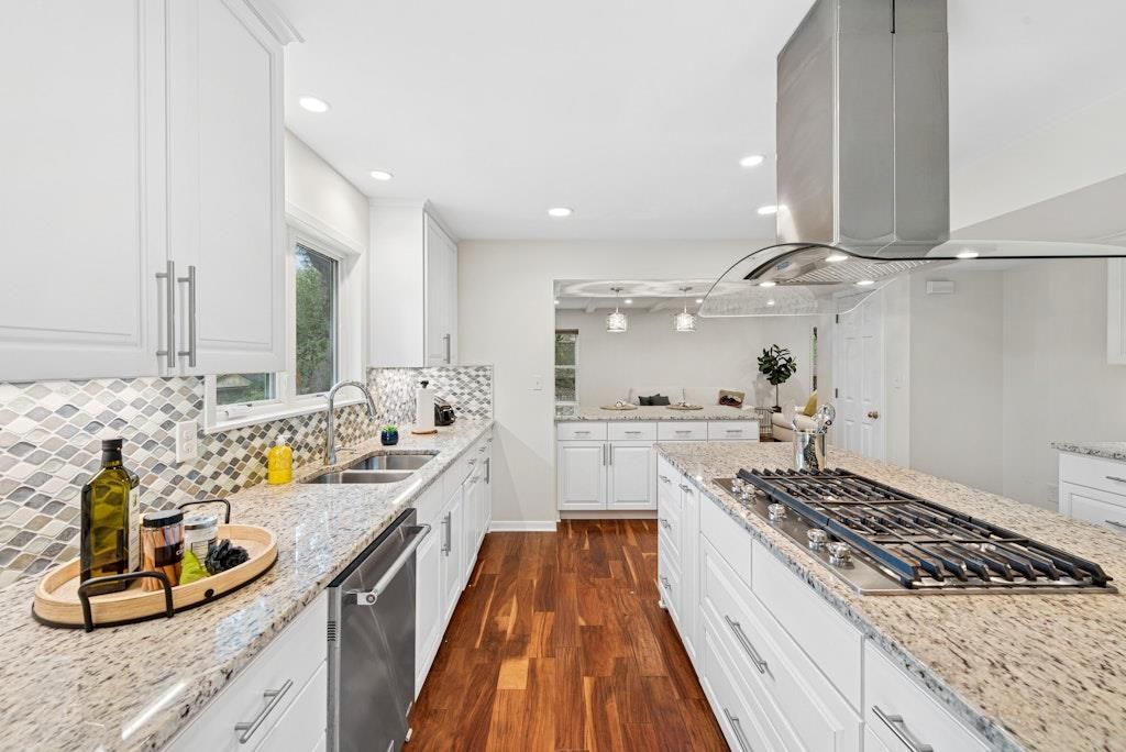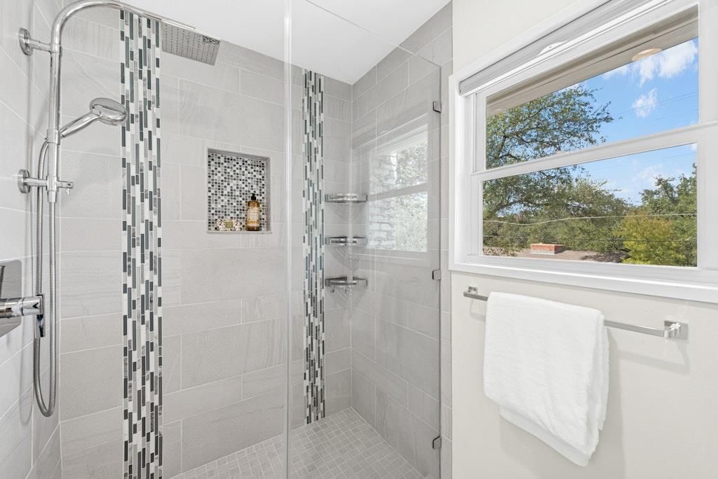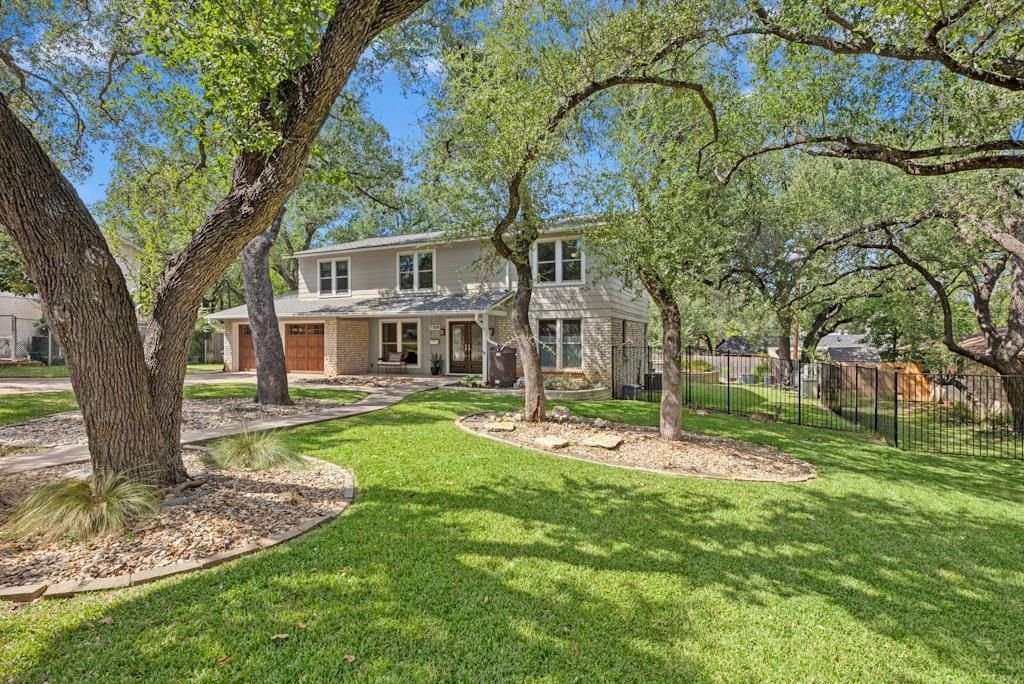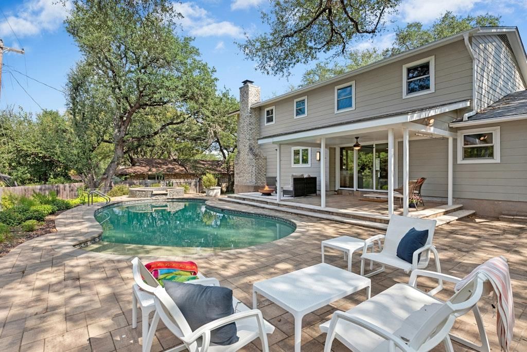 This gorgeous home is on a beautiful tree-filled lot in the highly desirable Northwest Hills neighborhood. It's close to schools, shopping and restaurants. The light-filled home features a gourmet kitchen, large dining room, family room with a beautiful stone fireplace, guest bath, and generously sized laundry room on the first floor. On the second floor you'll find a large Primary Suite and four additional bedrooms and bath. The primary bedroom features corner windows and updated bathroom with walk-in shower. The large backyard offers a sparkling pool and built-in spa as well as plenty of space for play and pets. The yard features two large rain barrels, garden, and combination of sprinklers and drip irrigation.