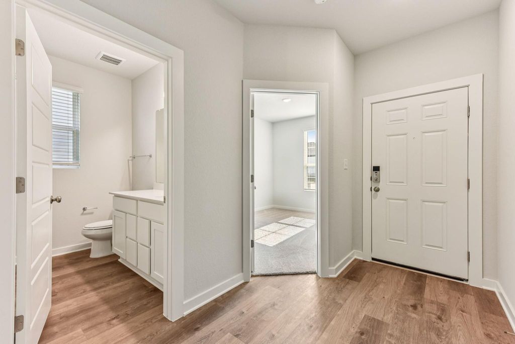 MLS# 7288020 - Built by Century Communities - Ready Now! ~ The popular single-story Pinion at The Glen at Stallion Run blends open-concept living with private relaxation. Toward the front of the home, two secondary bedrooms share access to a full hall bathroom. A third bedroom can also function as a versatile flex room, providing the perfect space for a personal library, craft room or quiet study. Designed for everyday convenience, a spacious kitchen provides ample pantry, cabinet and counter space. A generous great room and charming dining area hug the kitchen for a seamless flow between spaces. Toward the back of the home, a secluded primary suite boasts a roomy walk-in closet and a private bath.