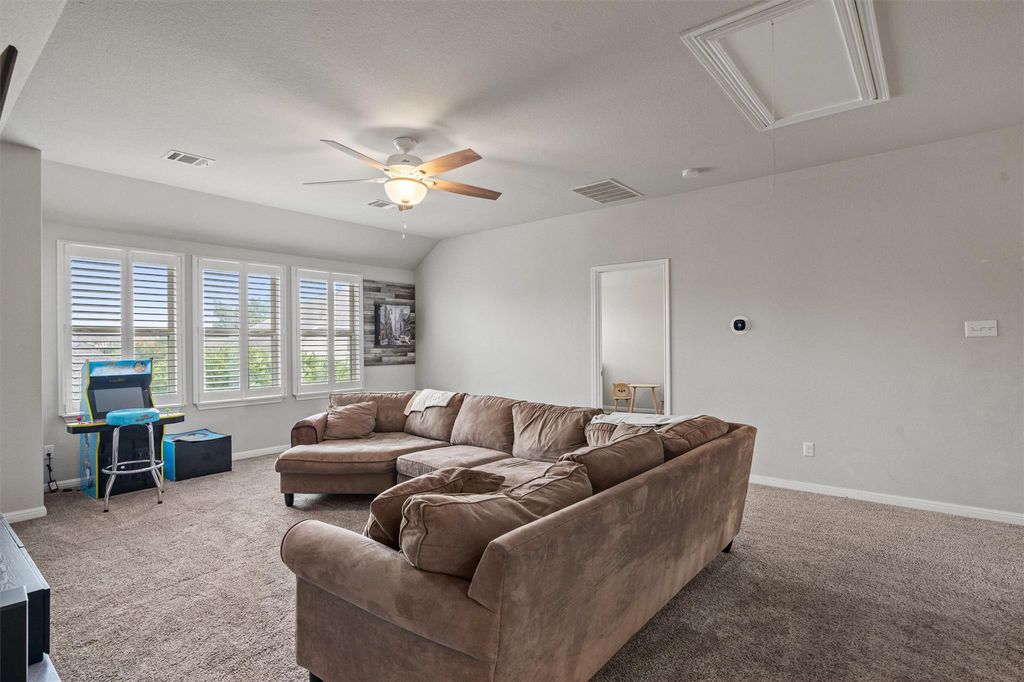 Welcome to the heart of ShadowGlen"”one of Manor's most desirable golf course communities! This expansive 6-bedroom, 4-bathroom home sits at the top of a quiet cul-de-sac once known as "model home row" and is just steps from the community pool and amenity center. With 3,400 square feet of living space, this home offers a flexible multi-generational floorplan, featuring a spacious primary suite on the main floor and a second master with en-suite bath upstairs"”perfect for guests or extended family. You'll love the hardwood floors, gourmet granite kitchen with center island, breakfast nook, and formal dining area designed for entertaining. Upstairs, the oversized game room provides the ultimate hangout space, while full-sized closets in every bedroom ensure plenty of storage. A new solar panel system adds energy efficiency and long-term savings"”just one of the many upgrades that make this home stand out. This is located in the rapidly growing city of Manor, you'll enjoy new retail, restaurants, and major conveniences like H-E-B, Home Depot, and Starbucks just minutes away. With easy access to Tesla, ABIA, Apple, Dell, Samsung, Google, and Downtown Austin"”all within 20 minutes, this is the perfect home base for Central Texas living.