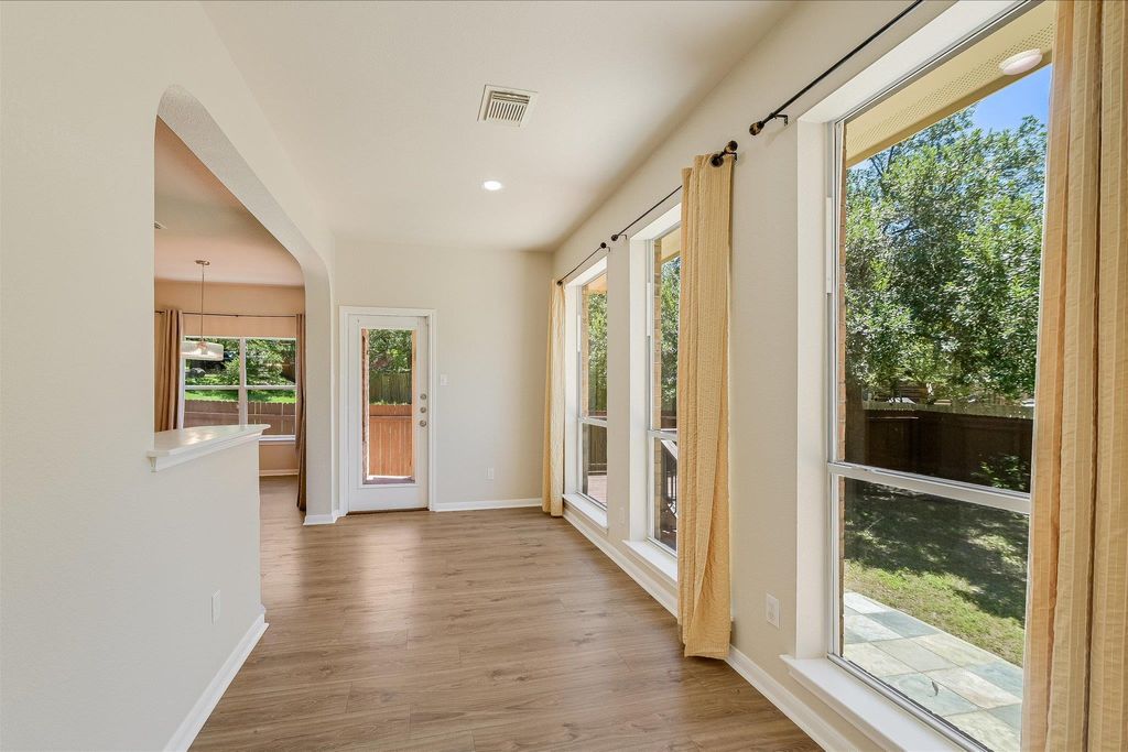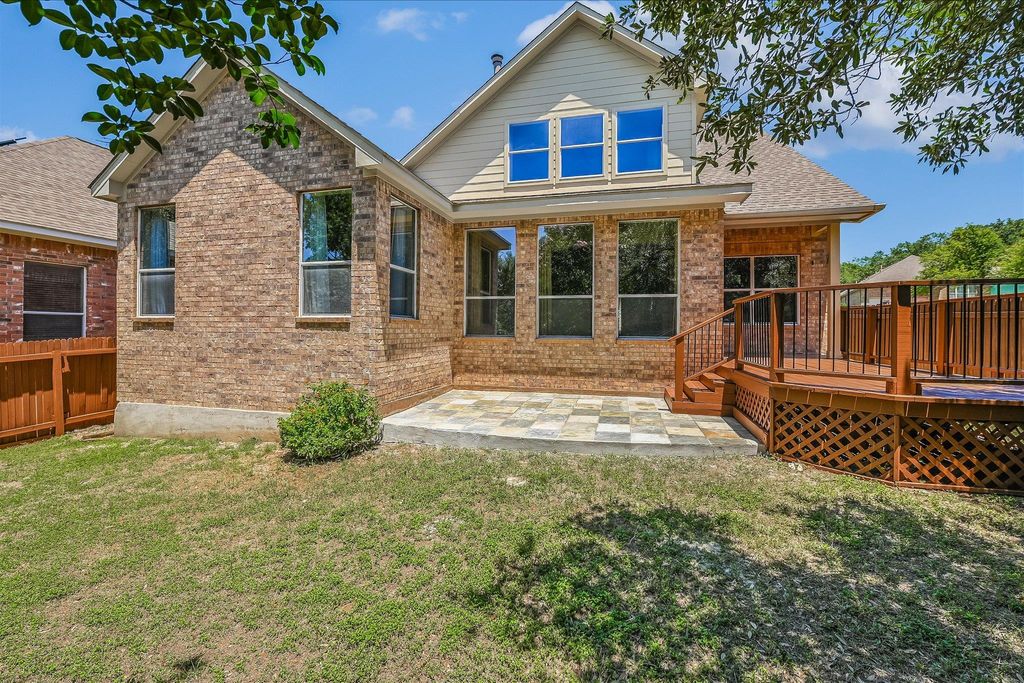 Beautiful Greenbelt-Backed Home in Steiner Ranch - Stunning two-story traditional brick home nestled in the highly sought-after Steiner Ranch community. This 4-bedroom, 3-bathroom residence spans 2,749 square feet and sits on a 0.135-acre lot backing to a serene greenbelt"”offering both privacy and peaceful natural views. Step inside to discover an open, flowing layout with two spacious living areas and two dining spaces, ideal for both relaxing and entertaining. The heart of the home features a modern kitchen with granite countertops, stainless steel appliances, a large island, pantry, and eat-in dining nook. Enjoy the ambiance of the cozy gas fireplace in the family room, complemented by abundant natural light and recessed lighting throughout. The primary bedroom is conveniently located on the main floor, providing a private retreat with walk-in closet and scenic views of the backyard. Additional features include tile, vinyl, and carpet flooring, a 2-car garage, and a lush, private yard equipped with an automatic sprinkler system and mature trees. Enjoy the tranquility of backing to a greenbelt while being part of the vibrant Steiner Ranch community, offering exceptional amenities including community pool, tennis courts, & parks. Top-rated Leander ISD schools.