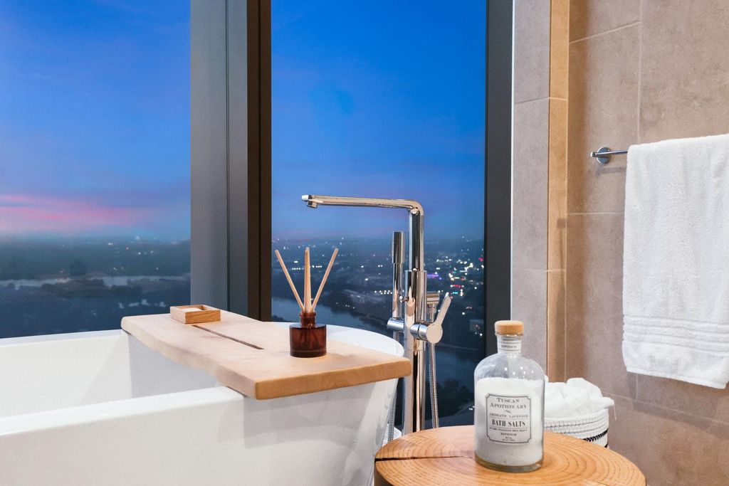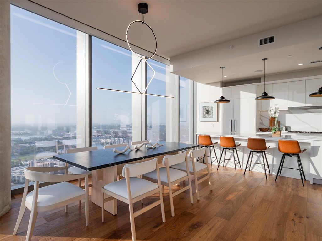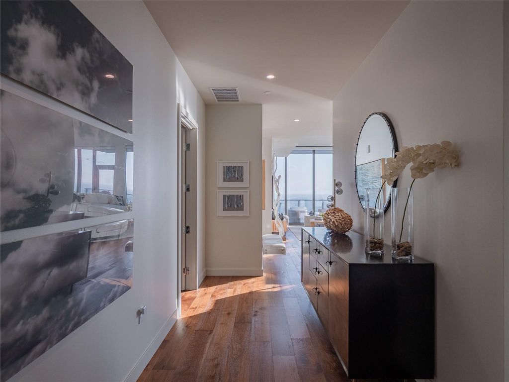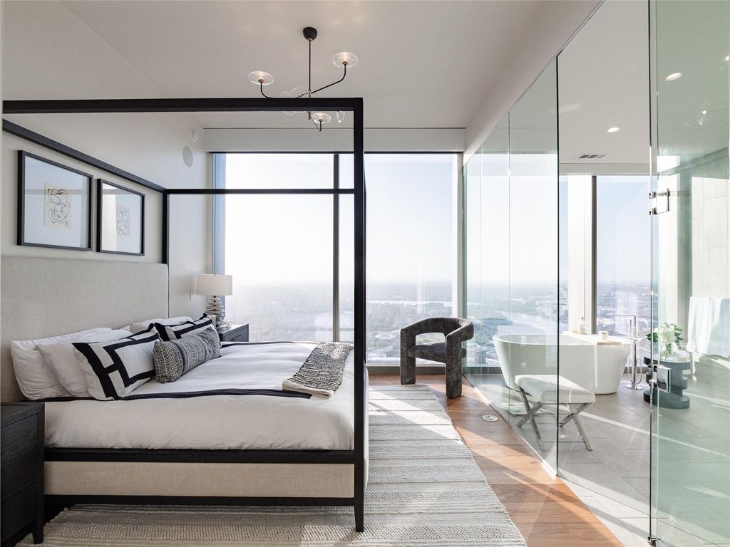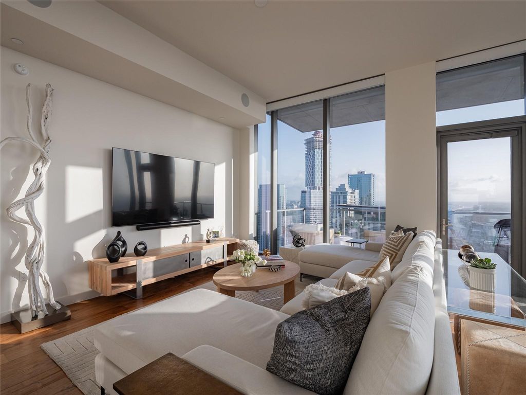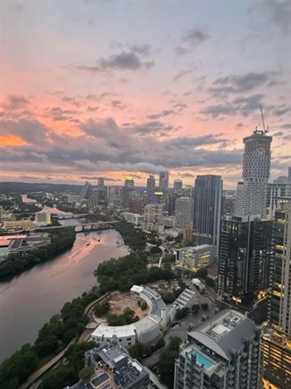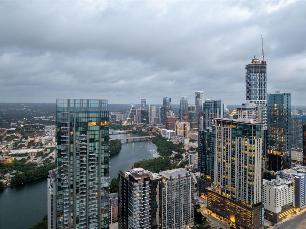 Penthouse 4603 at 44 East - A Bespoke Sanctuary in the Sky. Perched above the vibrant Rainey Street District, Penthouse 4603 offers a rare chance to own one of the few true penthouses in this dynamic downtown enclave"”uniquely positioned without neighboring towers crowding your views. This bespoke sanctuary in the sky is wrapped in floor-to-ceiling windows, offering breathtaking panoramic views to the east, north, and west"”unobstructed, uninterrupted, and utterly captivating. From this elevated vantage point, you'll experience sweeping cityscapes, stunning skyline sunsets, and the tranquil curve of Lady Bird Lake. Located directly at the Rainey Street Trailhead, with no buildings impeding the views, the residence delivers a front-row seat to Austin's magic"”from the glow of sunrise to a blanket of fireworks lighting up the sky on the Fourth of July and New Year's Eve. Inside, the penthouse blends refined design with thoughtful functionality. Extensive upgrades include a custom laundry cabinet buildout with a beverage fridge, beautifully built-in shelving and drawers in the primary, guest, and coat closets, and a fully integrated smart home system featuring Lutron dimmable lighting, Nest thermostats, and Sonos speakers"”expertly wired and installed throughout. Motorized solar and blackout shades ensure comfort and privacy at the touch of a button, while elevated lighting fixtures illuminate each space with warmth and style. For those seeking a turnkey opportunity, a curated selection of designer furnishings"”perfectly tailored to the space"”is available, allowing the residence to be enjoyed as an immediate, fully realized home. 44 East offers unmatched amenities including 24-hour concierge, resort-style pool, fitness studios, dog park, and elegant lounges. Penthouse 4603 is a private, panoramic, and rare offering in the heart of Austin.