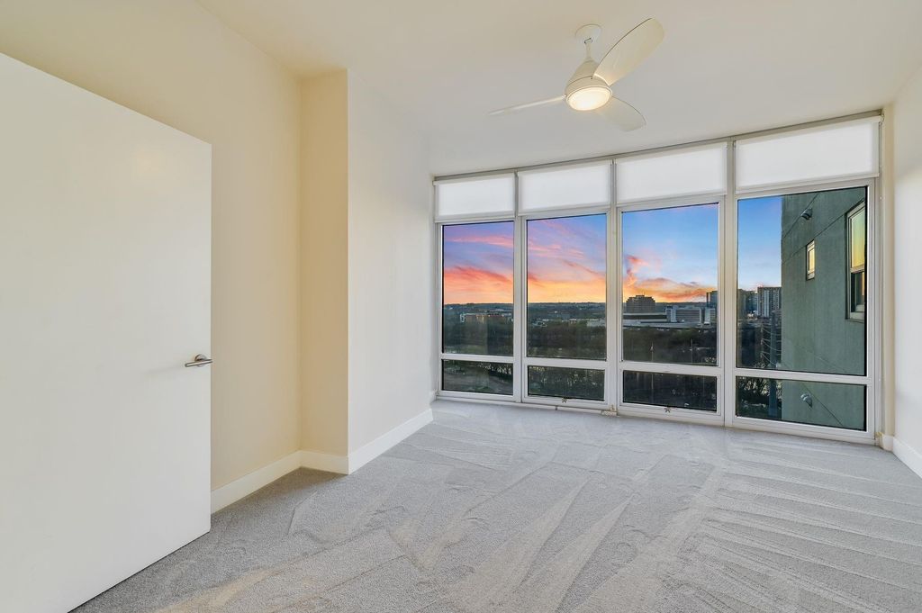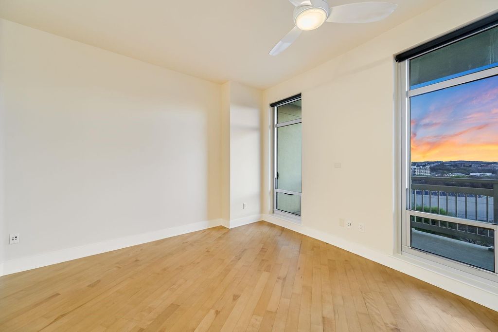 The Shore is perfectly situated by all the entertainment options Rainey St. has to offer, but not actually *on* Rainey St. Just steps from the Shore's front door is the hike & bike trail, Lady Bird Lake, the Mexican American Cultural Center & restaurants of James Beard nominated chefs! At The Shore, you're right in the action, but you have a unit tucked up on the 9th floor to escape it all. The Shore's location grants you easy access to the Austin Bergstrom Airport and all the things Downtown Austin has to offer. Key Features: Spectacular Views: Delight in magical western upriver views of Lady Bird Lake and Hill Country sunsets from the private (186 sf) balcony. Tranquil Bedrooms: Wake up to expansive views of Lady Bird Lake from the comfort of your bed in the primary bedroom. This unit is fresh and turnkey-ready for its next tenant! Parking: Benefit from 2 private, reserved parking spaces & direct elevator access to them Resort-style Amenities: Embrace the luxury lifestyle with 24/7 concierge, rooftop pool, fitness center, & access to the Hotel Van Zandt's pool deck & restaurant/bar. Vibrant Neighborhood: Explore the vibrant Historic Rainey Street District w/ James Beard-nominated restaurants, boutique grocers, nightlife, & more just around the corner. Don't miss your chance to live in luxury at The Shore! Enjoy breathtaking sunsets & front-row seats to the Congress Bridge Bats from your private balcony. (1-time nonrefundable move-in fee of $150, + a $500 *refundable* (pending no damage from move-in) deposit.