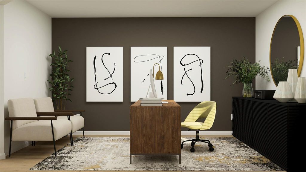 The Cardwell - This single-story home is perfect for families, with three bedrooms and a full bathroom in the front of the home and an owner's suite in the back. The open living area features a modern kitchen, dining area and family room with ample space for furniture. Plus, there is a small covered patio in the back. Photos are for illustrative purposes only. Estimated Completion December 2025.