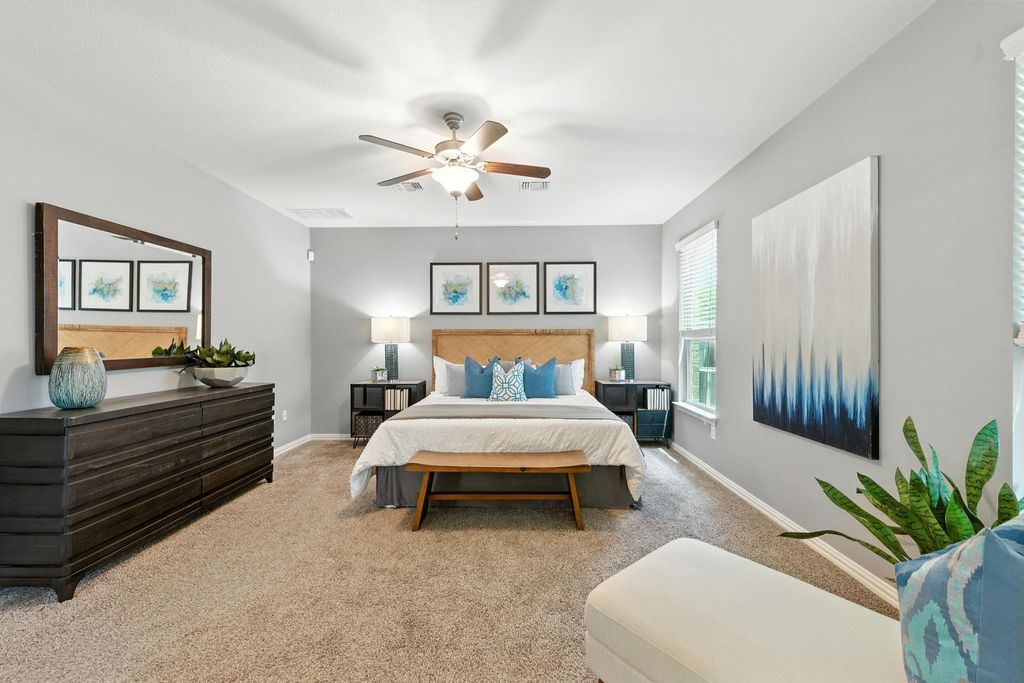 Discover your perfect home in this stunning 2,900 sq ft residence, featuring 4 bedrooms and 3 bathrooms, built less than 10 years ago. Thoughtfully designed for comfort and versatility, this home boasts high ceilings, large closets, and built-in shelves in every room"”ideal for work, relaxation, and family gatherings. Whether working remotely or entertaining friends, you'll appreciate the spacious layout that provides plenty of room to spread out. Enjoy cozy evenings by the fireplace in your inviting living space, perfect for cooler nights or relaxing weekends. The home's modern construction and design ensure both style and efficiency, offering a move-in-ready opportunity in a friendly, vibrant neighborhood. Outside, you'll be captivated by breathtaking sunsets and starry nights. In this gated community, the surrounding natural beauty, including trees, ponds, and walkable streets, create a peaceful outdoor environment. Nearby parks, ponds, a community pool, and scenic walking trails offer endless outdoor activities for all ages. Conveniently located close to Southpark Meadows, you'll have quick access to diverse restaurants, shops, live music venues like the Far Out Lounge, as well as local events in nearby charming Buda. The historic Buda Main Street, splash pads, farmers' markets, and annual community festivals provide a small-town feel within easy reach of the city. Two nearby HEB grocery stores make shopping effortless, and the Texas Keeper Cidery is a favorite local spot for fall markets, bites, and scenic views. Commuting is a breeze with easy access to I-35, Mopac, and other major roads, making your daily trips smooth and stress-free. This exceptional home combines generous space, modern amenities, outdoor beauty, and unbeatable convenience. Don't miss your chance to own this wonderful property"”your new lifestyle starts here!