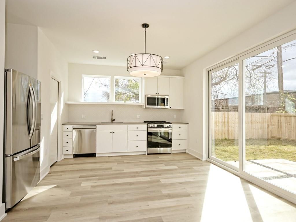 Welcome to 1116 Atkinson Drive, a thoughtfully designed home in the heart of Austin's St. Johns neighborhood within the centrally located 78752 zip code. This modern residence features an open living, dining, and kitchen floor plan on the main level with stainless steel appliances, quartz countertops, and custom designer tile and fixtures, along with a convenient powder bath for guests. The airy layout is enhanced by tall ceilings, great natural light, and a sense of openness while still offering privacy from neighbors. Upstairs, you'll find two well-appointed bedrooms, each with its own en-suite bath, plus a dedicated laundry facility for added convenience. The home's stylish finishes and functional design make it ideal for both comfortable everyday living and entertaining. Ideally located just 5 minutes from Mueller, 7 minutes to downtown Austin, and 10 minutes to the Domain, this property offers exceptional access to work, shopping, dining, and recreation while maintaining a welcoming neighborhood feel. 1116 Atkinson Drive delivers a polished blend of contemporary design, livability, and prime central Austin location.