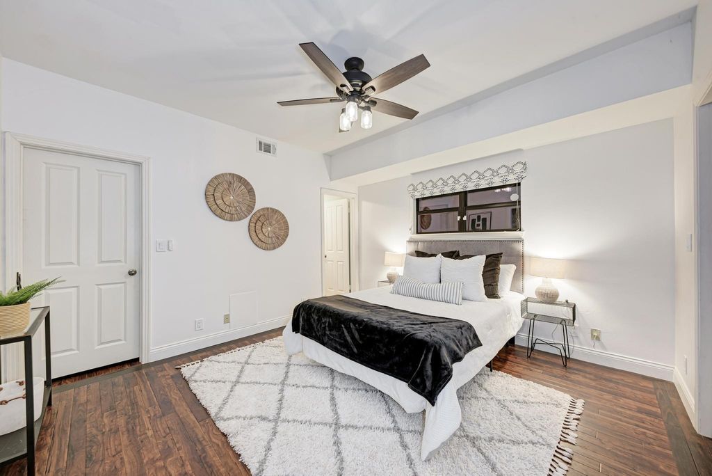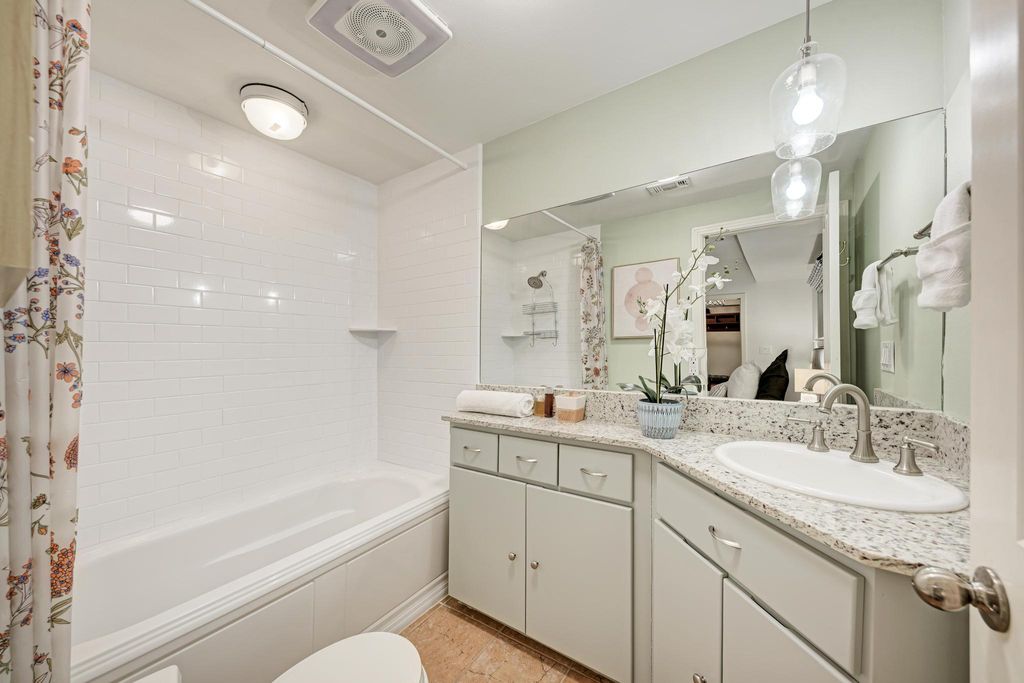 Sophisticated Luxury Condo Living in Clarksville - steps from Downtown Austin! Located just two blocks from 7th & Lamar, this boutique residence offers the perfect blend of historic charm and modern convenience. This is a coveted ground floor unit with a private backyard - one of the few offered. Enjoy the best of city living with Whole Foods, Lin Asian Bar, and Pecan Square Cafe all just a short stroll away. Plus you're right behind the exciting new up & coming Sixth & Blanco development. Inside, a bright open-concept living and dining area features crown molding, gorgeous tile flooring, and a designer tiled fireplace with a smooth modern wood mantel. Natural light flows through tall windows and a glass door that opens onto an enchanting patio with tiered landscaping, a grassy area perfect for pets, and privacy fencing. The remodeled chef's kitchen impresses with ceiling-height cabinetry, granite countertops, built-in appliances and an entertainer's peninsula under a graceful archway. Enjoy a bright and spacious primary suite with walkout access to the backyard plus a spa-like dual vanity ensuite bath with a remodeled walk-in shower and an XL walk-in closet. The guest suite also features its own ensuite bath and walk-in closet, while a private office or bonus living area boasts the addition of custom built-ins. A powder room, in-home laundry, and two reserved garage parking spaces add everyday convenience. Nestled within one of Austin's most coveted neighborhoods, this exclusive 11-unit community offers a quiet retreat amid the energy of downtown. Step outside and explore local favorites such as BookPeople, Swedish Hill, Garbo's, Amy's Ice Cream, Pepe's Tacos, and Bar Peached, or unwind at the nearby West Austin Dog Park. With gas, water, trash, recycling, quarterly pest control, weekly landscaping, and porter service included in the POA, residents enjoy a truly effortless lifestyle in one of Austin's most walkable areas. Secure your showing today!