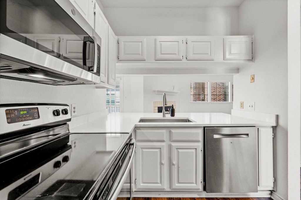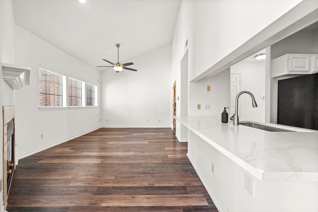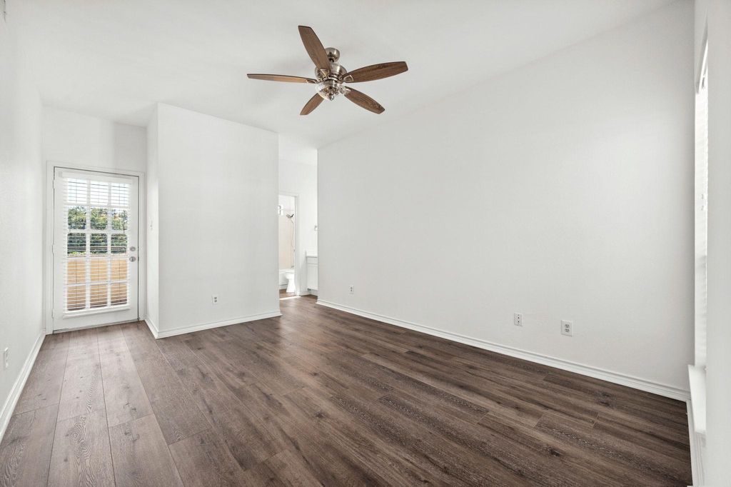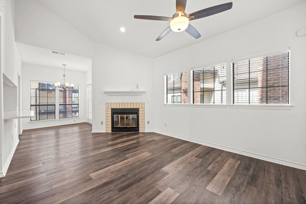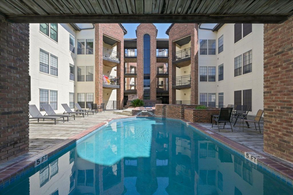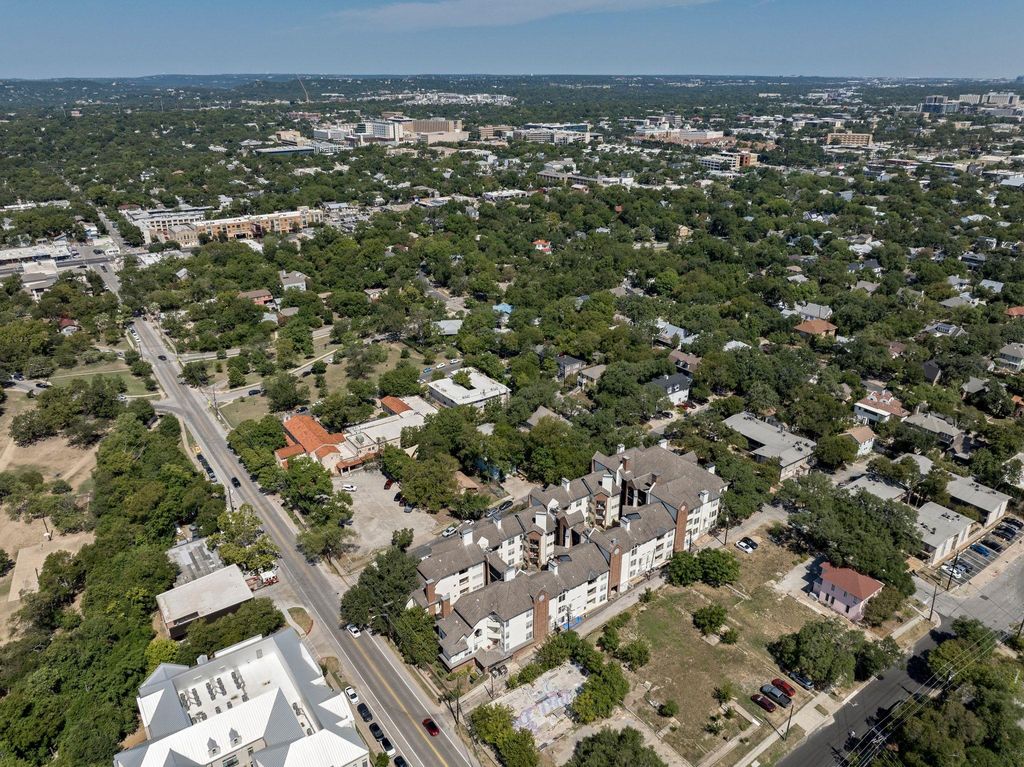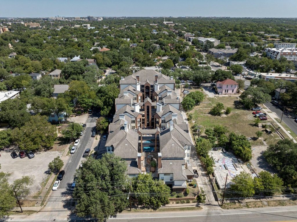 Freshly updated and move-in ready, this condo offers the perfect blend of convenience and comfort just steps from the University of Texas campus. Stroll to engineering buildings, coffee shops, and favorite eateries while enjoying a refreshing retreat from West Campus life. Inside, soaring ceilings, abundant storage, and thoughtful bedroom separation set the stage. The kitchen now features a counter-height bar that opens dramatically to the living room, complete with sleek quartz counters. A cozy fireplace warms the spacious living and dining areas, all accented by fresh paint and wood-style flooring. Both bedrooms are generously sized with walk-in closets, private bathrooms, ceiling fans, and balcony access. Added perks include an in-unit washer and dryer plus two dedicated parking spaces"”a rare find near campus. The gated community provides peace of mind along with water, sewer, and trash included in HOA fees. A sun-soaked courtyard pool rounds out the amenities.
