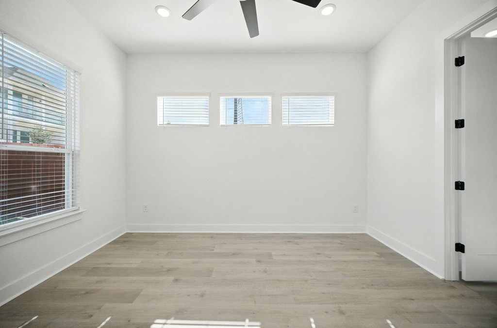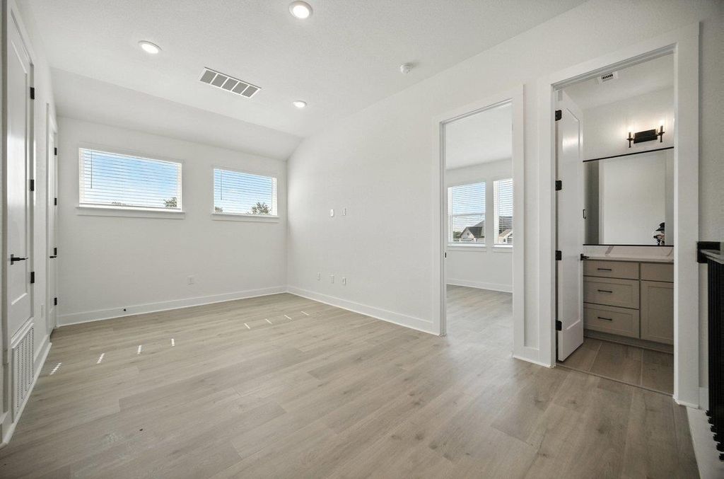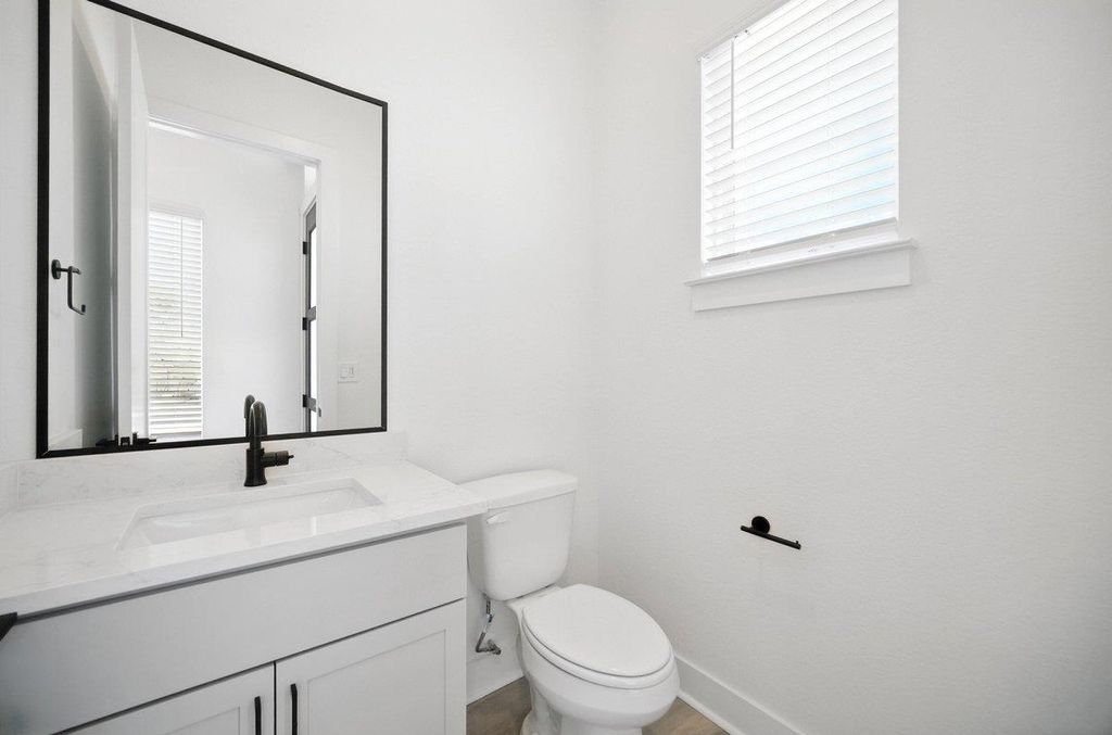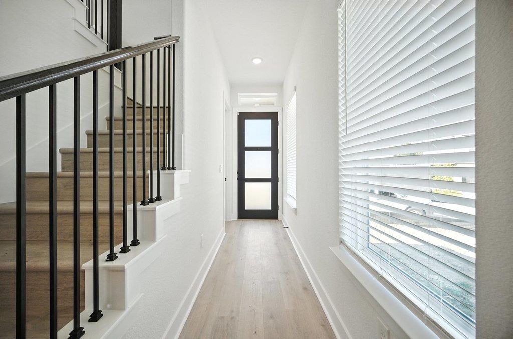 Nestled within the Foxfield community and just minutes from the domain, this 2-story home is 1,910 square feet of thoughtfully designed living space. Offering 3 bedrooms and 2.5 bathrooms, this newly built home is a per- fect blend of comfort and convenience. Step inside and experience the open ambiance created by 10-foot ceilings, allow- ing natural light to brighten every corner. The stylish kitchen is a true centerpiece, featuring sleek cabinets, a 36-inch built- in cooktop, and quartz countertops, combining practicality with a touch of luxury. Durable revwood flooring flows seam- lessly throughout the entirety of the home. The primary bedroom is conveniently located on the first floor and offers an extended luxury shower, insinuating a peaceful retreat to relax and unwind. Step outside to one of the only oversized yards left within the community. Don't miss the opportunity of making 1703 Kit your forever home!