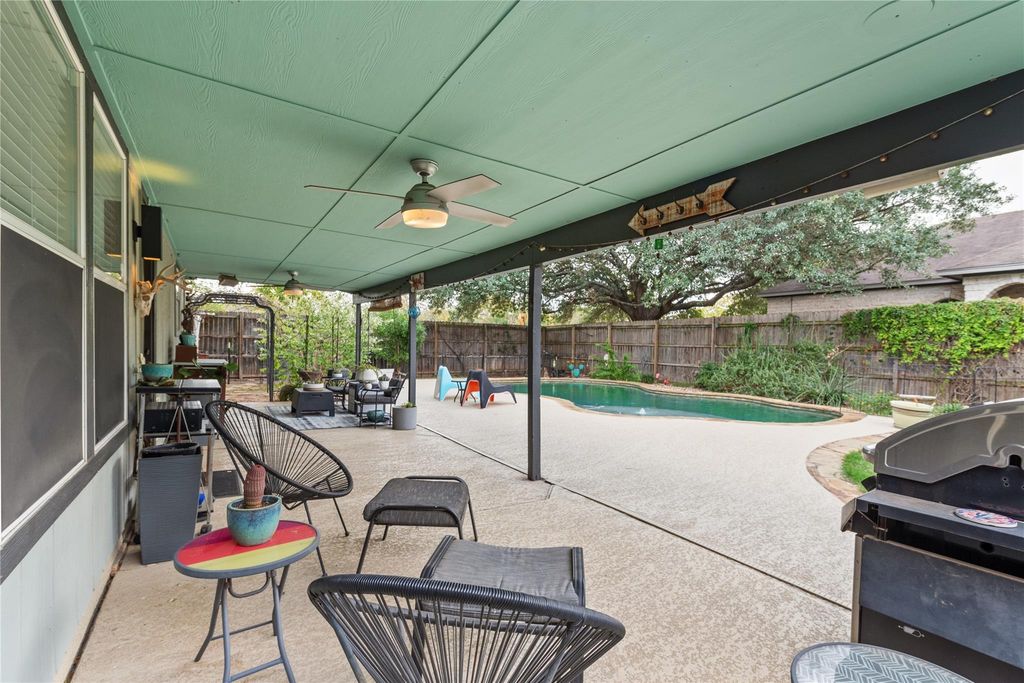 Immaculate South Austin corner-lot home with a pool and a private backyard retreat in 78748. This 4-bedroom, 2.5-bath home offers multiple living areas, great natural light, and an easy, open flow for everyday living or entertaining. The main level features two spacious living spaces plus home office area, step outside into the backyard oasis with sparkling swimming pool, mature landscaping, and room to lounge or play. Upstairs, all bedrooms are tucked away for privacy, including a generous primary suite with walk-in closet and en-suite bath. Fresh, well-maintained interiors mean you can move right in and enjoy, or personalize over time. Located in an established neighborhood with quick access to Mopac, I-35, shopping, dining, and employers, this home delivers the South Austin lifestyle with a true backyard escape.