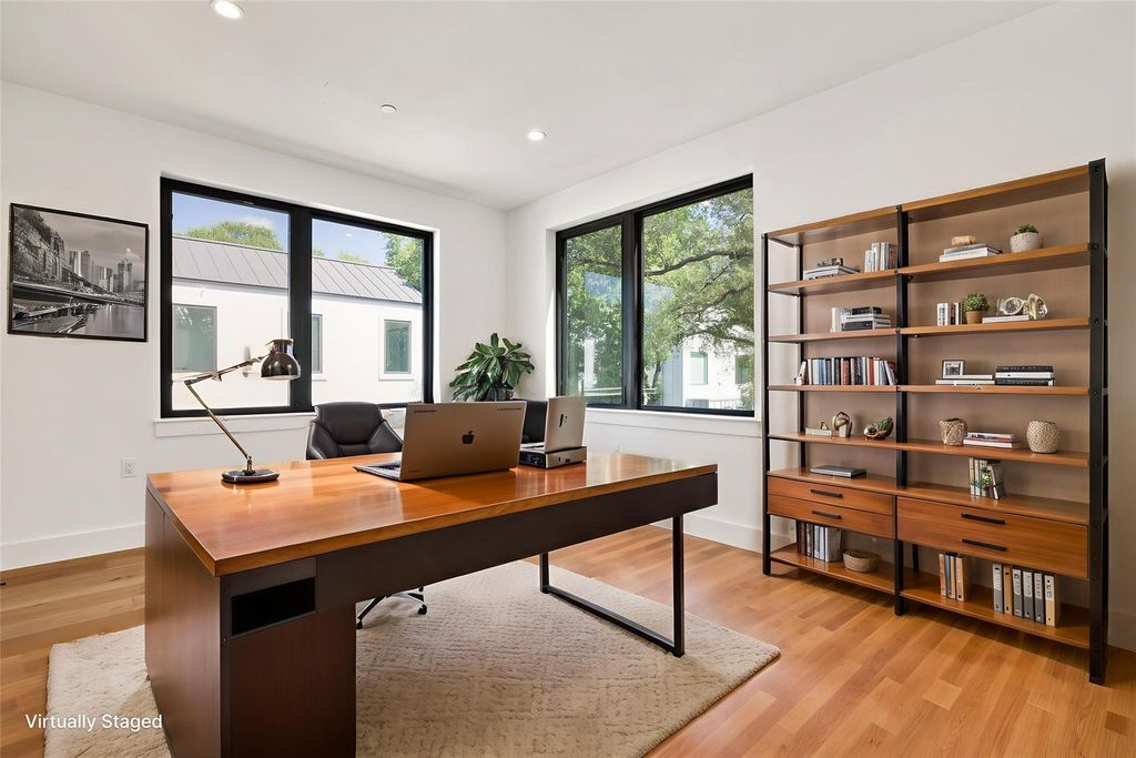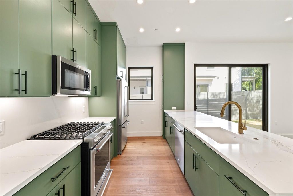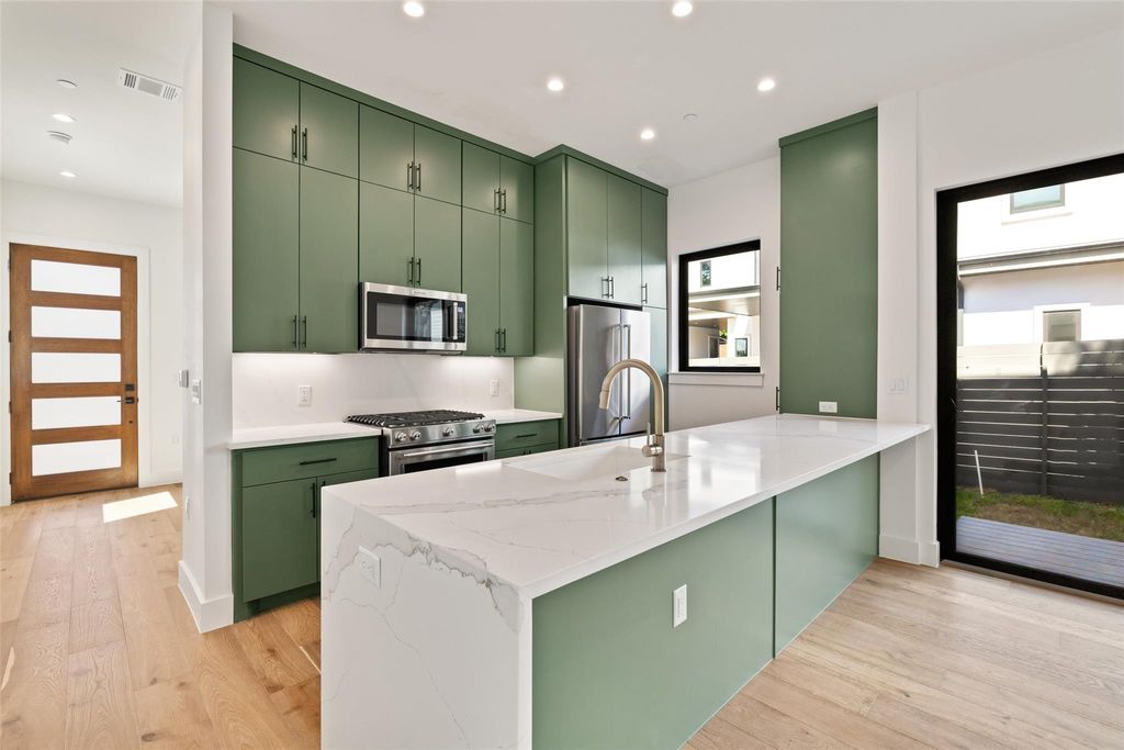 Newly Priced! A GREAT VALUE. NEW CONSTRUCTION IN 78704.....Modern city living near downtown. 2 Bedrooms, 2.5 baths, 2 living & 1 Car Garage (Semi-detached home) 1 of 8 unique residences nestled in the small enclave of Clawson Oaks. All 8 homes have different floor plans. Showcasing contemporary design, clean lines & stylish finishes, these two & three bedroom homes offer the perfect blend of function, location & lifestyle. Beautifully designed elevated sexy bathrooms. Abundant natural light fills the interior, highlighting such features as quartz countertops & backsplash with KitchenAid appliances, Modern Euro style cabinets & soft close hardware. Beautiful plank wood floors throughout & custom tile bathrooms. Each home has a private backyard, offering a tranquil retreat amongst the stately Live oaks that adorn the property. Enjoy the vibrant outdoor ATX lifestyle. Located near many of Austin's favorite hangouts, restaurants, coffee shops, bars, BBQ, music venues, Lady Bird Lake, Barton Springs & Zilker Park. Your perfect private retreat close to everything. (Andersen sliding doors & casement windows, Standing seam interlocking metal roof, Stucco & architect line James Hardie V Plank siding exterior, Tankless hot water heater, Spray foam insulation, Carrier HVAC, Wood and tile flooring throughout & Google fiber) Ready for BLUE TAPE buyer walk through and final construction punch list. Builder warranty provided at closing. A Must See! *Virtual AI Furnished & Back yard grass images.