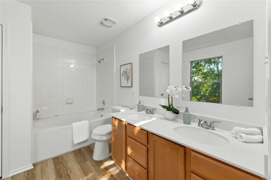 Welcome to this stunning two-story home, perfectly situated in a desirable North Austin community, offering an ideal blend of modern comfort and convenience. Located just minutes from the Samsung campus, this residence provides an easy commute, allowing you more time to enjoy all that Austin has to offer. Step inside to discover a spacious and thoughtfully designed open-concept floor plan, ideal for both daily living and entertaining. The main level features a bright and airy living room with soaring ceilings and fourth bedroom on the first floor offers flexibility to suit your needs. Upstairs, you'll find the private primary suite, a tranquil retreat with a luxurious en-suite bathroom featuring a soaking tub, shower, and a large walk-in closet. Two additional well-proportioned bedrooms and a full bath complete the second level, providing plenty of space for family and guests. The home boasts a beautiful, low-maintenance backyard, perfect for outdoor gatherings and relaxation. Enjoy the community's amenities, which may include a pool, playground, and walking trails. With its prime location, modern features, and generous space, this home is a must-see for anyone seeking a premium living experience in Austin.