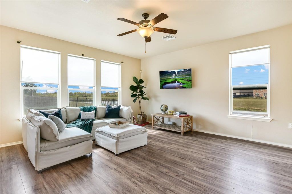 Welcome to a beautifully maintained two-story home in the highly desired Thornbury community, offering rare privacy and sweeping views of a greenbelt and tranquil pond"”only one side neighbors and wide-open space right outside your backyard. Step inside to an inviting open-concept layout filled with natural light. The spacious living room features large picture windows, warm flooring throughout (no carpet!), and seamless flow into the dining area and kitchen. The kitchen is thoughtfully designed for cooking and entertaining, complete with granite countertops, stainless steel appliances, abundant cabinetry, and a breakfast bar overlooking the main living space. Upstairs, the generous primary suite is a true retreat"”bright, airy, and oversized enough to include a sitting area or workspace. The ensuite bath features a dual vanity, soaking tub, and a walk-in closet. Two additional secondary bedrooms and a full bathroom complete the upper level. Outside, enjoy serene mornings and evenings from your private yard backing directly to the park-like greenbelt and community pond"”a rare and peaceful setting in this area. Located just minutes from Samsung, Applied Materials, Dell, major highways, downtown Austin, and an array of shopping and dining options. The Thornbury neighborhood offers fantastic amenities including a community pool, playground, gym, and sports courts