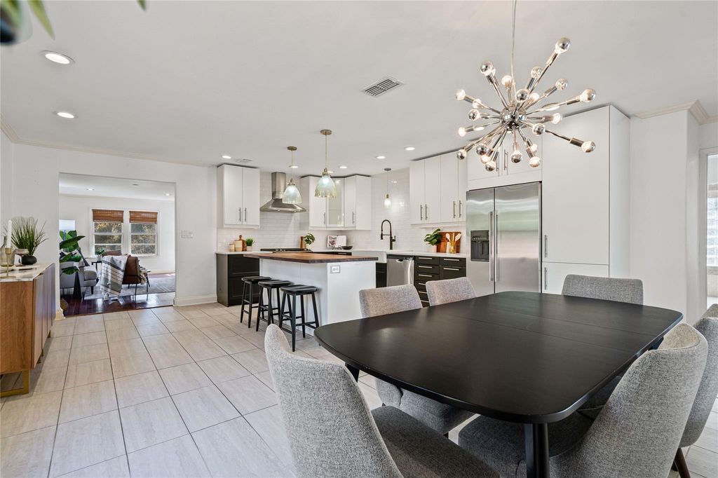 Nestled on a tree lined street in the heart of Crestview, this beautifully updated midcentury home offers 1,448 square feet of comfortable living in one of Austin's most desirable central neighborhoods. Built in 1957, the 3 bedroom, 2 bath layout features a warm, light filled living room with hardwood floors that create an inviting first impression. The kitchen and dining room form a spacious, connected area with gas cooking, stainless steel appliances, and a large center island that is ideal for cooking, gathering, and entertaining. The private primary suite includes a walk in shower, dual sinks, a large custom walk in closet with built ins, and a dedicated beauty vanity. Two additional bedrooms and a full bath complete the interior layout, offering flexibility for guests, home office needs, or a growing household. Major improvements provide valuable peace of mind, including cast iron plumbing replacement with PVC, electrical updates and a tankless water heater in 2020, HVAC in 2021, and a new roof installed in October 2025. Cat 5 wiring supports strong work from home connectivity. Outdoor living is a highlight with an expansive covered back patio, mature pecan trees in both the front and back yards, and a fully fenced yard that is perfect for pets, gardening, or play. The two car garage includes a dedicated storage room and a Tesla charger for added convenience. This central Austin location places you minutes from Burnet Road restaurants, Anderson Lane shopping, neighborhood parks, and the Crestview MetroRail stop for an easy commute downtown. Taco Deli and Juice Land are both within a five minute walk, and a local veterinary clinic is just two blocks away. Experience classic Austin character paired with modern updates in a well loved, walkable community.