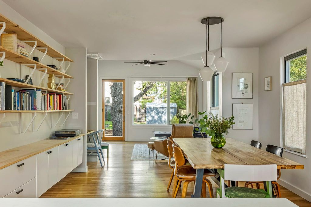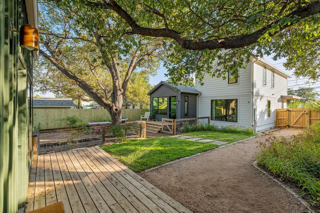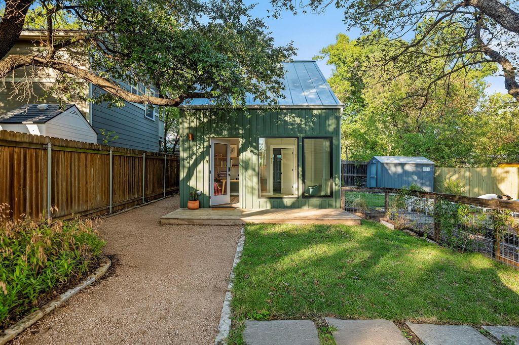 Step into what feels like the pages of Dwell magazine"”an artfully reimagined 1950s ranchette turned modern compound in the heart of Austin. Thoughtfully expanded and renovated by husband-and-wife architect-design team, this Highland gem effortlessly blends mid-century charm with minimalist design, high-end finishes, and a thoughtful, versatile floor plan. The light and airy main residence offers 3 bedrooms and 2 bathrooms with a ground-floor primary suite, open kitchen/living/dining, and 2 guest bedrooms, plus a flex space upstairs. Enter into the playful foyer, with a high traffic "drop zone" and accented with apple green paint and Farrow and Ball wallpaper. The kitchen features stainless steel appliances, Caesarstone countertops, marble tile backsplash, floating shelves, eat-in island, and an adjacent walk-in pantry. The spacious ground-floor primary suite overlooks the private backyard oasis through a massive picture window. Original solid white oak floors were carefully preserved, with new matching oak added through the addition. The star of this show is the vaulted living room with exposed beams and illuminated with Velux skylights, seamlessly opening up to the outdoor living space. Bathrooms feature Heath Ceramics tile & Kohler fixtures. Clever plywood storage throughout. The detached casita offers space for guests and a home office. Operating as the Highland Hideaway Airbnb, it generates approximately $30,000 of turnkey passive income annually, with guests praising its "adorable design" and "perfect location"”minutes from everything yet peacefully quiet." All major systems"”plumbing, electrical, foundation, HVAC"”were replaced during 2019 renovation. New roof installed in 2024. Casita was built in 2020. Additional upgrades include dual EV chargers, Nest thermostats, and keyless entry. Located in Austin's Highland neighborhood, this home offers unmatched access to everything Austin"”walkable to top-rated schools, coffee shops, breweries, and restaurants.
