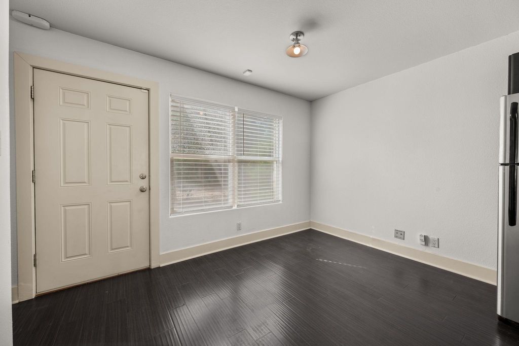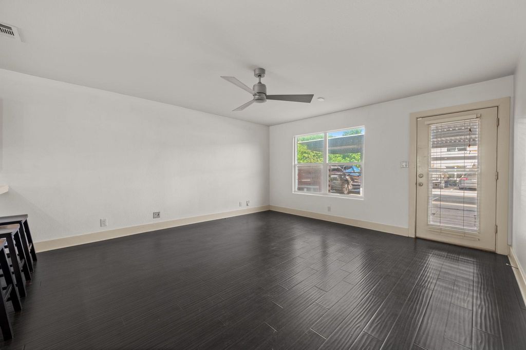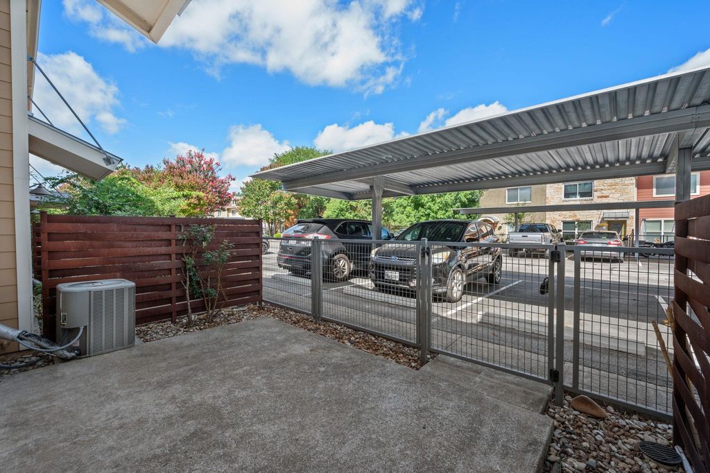 This spacious 1-bedroom, 1.5-bathroom townhome offers comfort and convenience in a gated community right across from ACC Riverside. The open-concept kitchen is outfitted with custom cabinetry, Corian countertops, travertine backsplash, and stainless steel appliances. The bright living and kitchen space opens to a private back patio, perfect for relaxing or entertaining. Enjoy the ease of your assigned carport spot located just outside the back door. Residents have access to excellent community amenities including a pool, fitness center, outdoor grills, dog run, and shaded pavilion. With quick access to Austin Airport, nightlife, restaurants, and shopping, this location checks all the boxes for urban living.