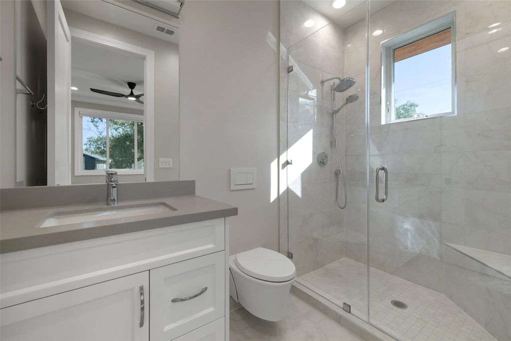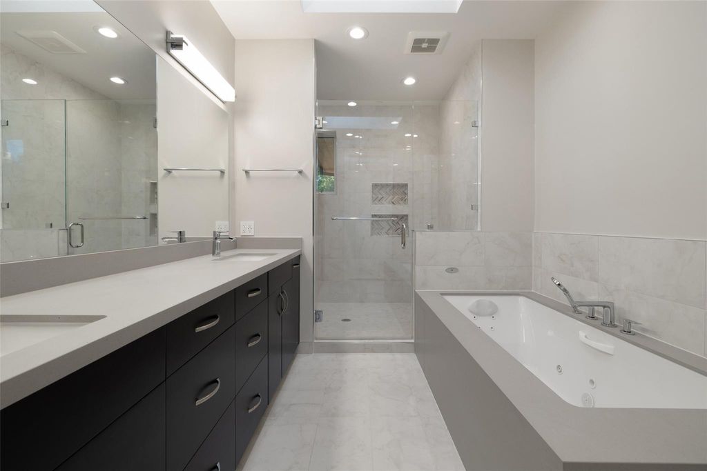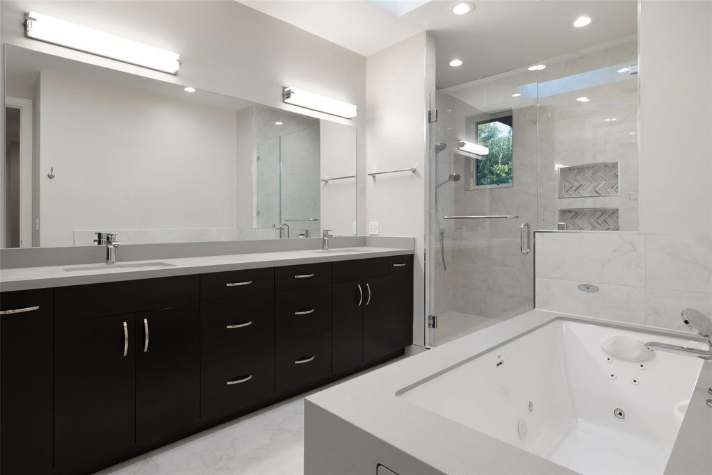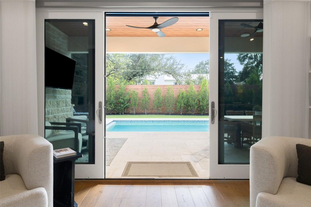 Welcome to 4107 N Hills Drive, a rare find in Northwest Hills. The front facade blends natural materials w/ Hill Country contemporary design, instantly setting it apart & contributing to the neighborhood's evolving character. Thoughtfully designed & completed in 2024 as the owners' forever home, this true custom build pairs timeless craftsmanship w/ modern design & smart technology. With the future in mind, the home is equipped w/ solar panels, multiple EV chargers, & audio visual, lighting, & security"”all from your phone or tablet. The open-concept layout features 3 living areas & 2 dedicated offices, creating flexibility for work, play, & entertaining. At the heart of the home, the chef's kitchen showcases an oversized island, Thermador appliances, a 24-bottle wine column, & details like an appliance garage & hidden mixer cabinet. Floor-to-ceiling windows & sliding glass doors in the living room flood the space w/ natural light & connect to the outdoors. Downstairs offers 2 bedrooms, a private office, & open gathering areas anchored by a striking glass-lined staircase. Upstairs, the primary suite is a true retreat w/ dual custom closets & a spa-inspired bath featuring a soaking tub & oversized shower. 2 additional ensuite bedrooms, a teen lounge, & 2nd office complete the upstairs. The backyard is designed as a private oasis w/ a covered porch, outdoor kitchen, sparkling pool, & hot tub. A 3 car air-conditioned garage w/ epoxy floors, custom storage, & multiple EV chargers adds convenience. Solar panels, Tesla Powerwalls, & a full smart-home system enhance efficiency & security. Located in the coveted Northwest Hills neighborhood & walking distance to Doss Elementary & Murchison Middle School, & just minutes from Anderson High. Everyday conveniences, shopping, & dining are nearby, w/ Mopac providing quick access to both Downtown & The Domain. A rare blend of location, lifestyle, and design, 4107 N Hills Drive is truly one of Northwest Hills' finest.