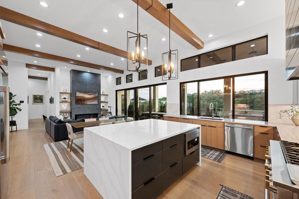 INTERIOR | Beamed Ceilings, Breakfast Bar, Cathedral Ceiling(s), Ceiling Fan(s), Chandelier, Double Vanity, Eat-in Kitchen, Entrance Foyer, In-Law Floorplan, Kitchen Island, Natural Woodwork, Open Floorplan, Pantry, Walk-In Closet(s) |