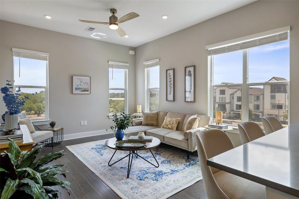 This corner unit brings in generous natural light that dances across the floors, making every morning feel like a breath of fresh air. When you want to unplug, The Grove wraps you in a tree-lined, well-planned environment that feels both grounded and upbeat. Low-maintenance living without missing the electric buzz of central Austin. You'll have your own reserved parking spot (5S) in the building's secure garage, plus secure bike storage. The HOA covers essential amenities, including trash service, pest control, shared utilities, and building maintenance. Step outside and you're in the heartbeat of The Grove's vibrant, mixed-use life. The elevator lands you right at the top of the building's clubhouse"”a sky-high hangout that makes gathering with friends feel effortless. Imagine your mornings filled with walks around Signature Park & Lake or watching the sunrise (or set!) on your rooftop deck with views of downtown and the UT tower. The private corner setting inside gives you both light and a serene sense of privacy. Want your coffee fix? Houndstooth, Neighbor Coffee and Friends, Merit Coffee, and Terrible Love are all within reach"”spots where the barista knows your order and the vibe is part coffeehouse, part living room. Craving dinner with character? Choose between Carve American Grill's warm atmosphere, Fonda San Miguel's timeless elegance, Verdad's bold fresh-made tortillas, or a relaxed early brunch at Snooze Eatery"”all just a short stroll away. Signature Park is just outside your door and great for lounging, reading, or taking in the city skyline from the trail. This community has tons of walking trails throughout, easy access to public transit, and ample street parking for guests. Shoal Creek's green ribbon beckons nearby, inviting you for scenic walks under mature oaks. The Triangle and Central Market are close by too. Living here means you're connected. Mopac access is simple, so Downtown, UT, or South Congress are just a quick drive away.