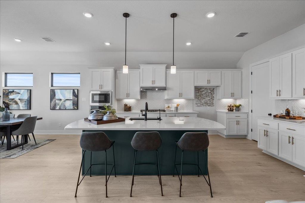 FINAL OPPORTUNITIES IN SWEETWATER! This beautiful single-story home offers the perfect blend of comfort, style, and functionality. Featuring four spacious bedrooms and three full baths, this home is thoughtfully designed for today's modern family. At the heart of the home is an open-concept kitchen, dining, and family room that creates an inviting space for entertaining and everyday living. The kitchen showcases a stunning granite island, abundant cabinetry, and a cozy breakfast area overlooking the backyard. Enjoy the formal dining room, ideal for hosting dinner parties! The primary suite is a relaxing retreat, complete with a spa-like bath featuring dual vanities, a soaking tub, and a generous walk-in closet that offers ample storage space. Step outside to your covered outdoor living area, perfect for grilling, relaxing, or enjoying evenings under the stars. HOME IS UNDER CONSTRUCTION, est. completion March. Some photos are REPRESENTATIVE of the floorplan.