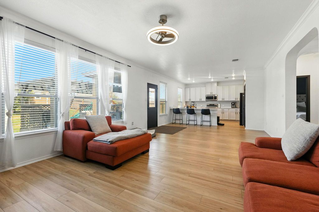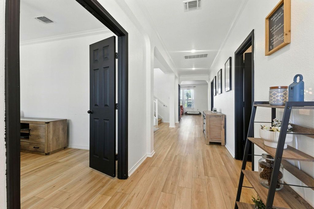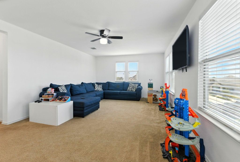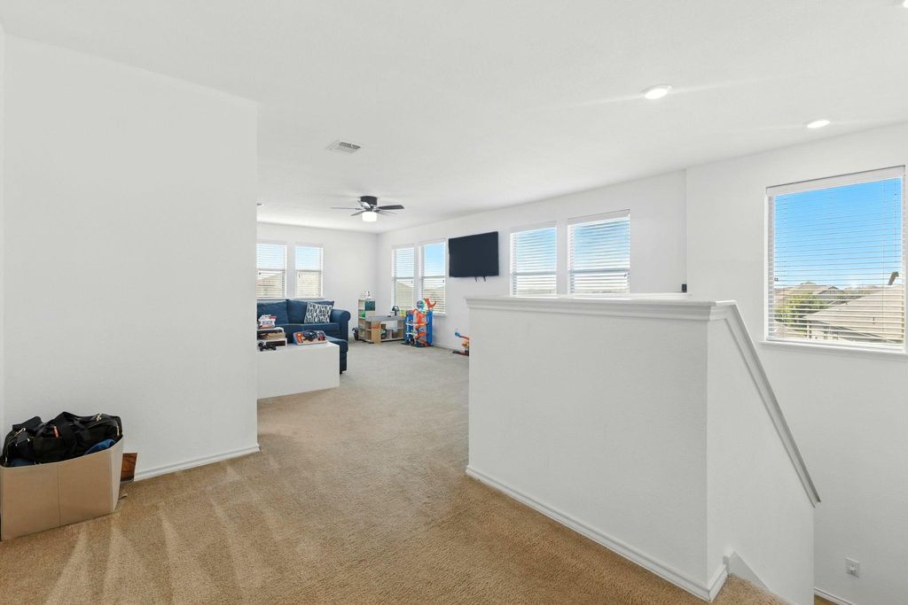 Lovely home with one of the largest lots in the subdivision, over 1/3 of an acre. The private backyard offers a patio with a pergola, fire pit and there is still room for a pool and a good size garden. Truely a year-round sanctuary. The house is updated with quartz countertops, designer back splash, stainless appliances and plenty of storage. The kitchen is open to the large living area with a faux fireplace for ambiance. There is a dedicated office downstairs and large living area upstairs with three large secondary bedrooms. This bright open floorplan home also features luxury vinyl plank flooring throughout the main level adding durability and a sleek contemporary look. Close to restaurant, shopping and supermarkets Tesla and Samsung. Easy access to I 30 and the airport.