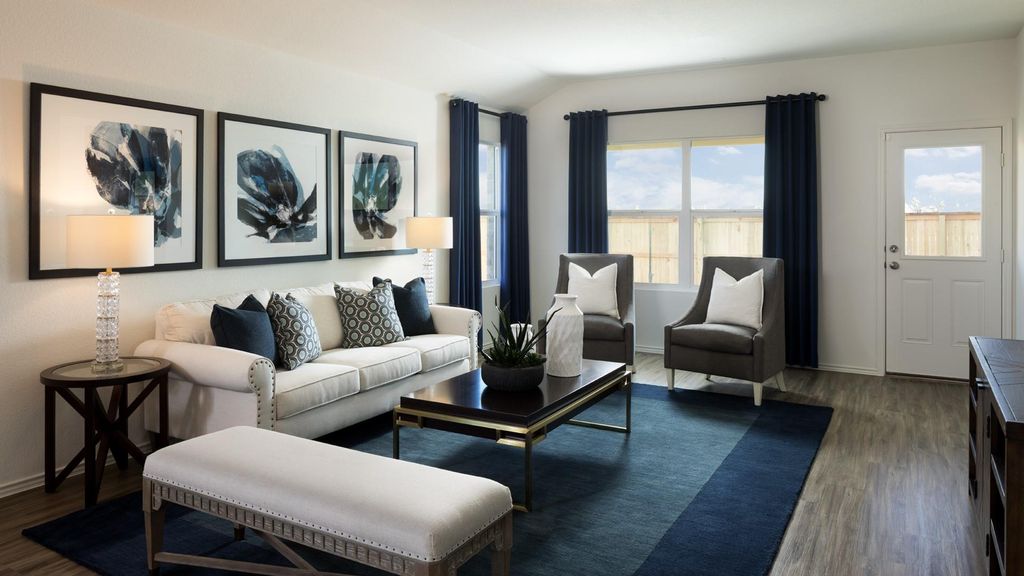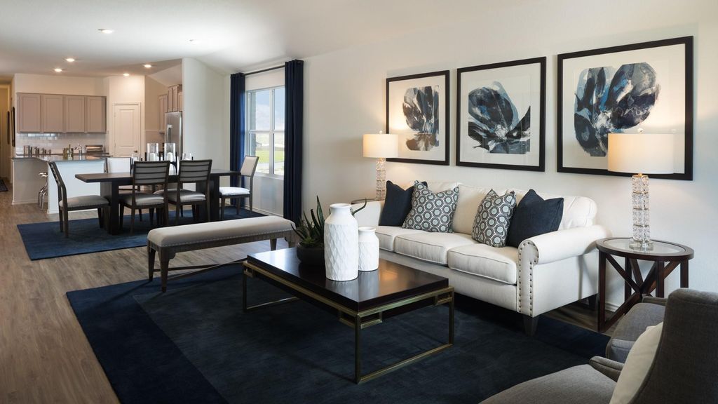 The Duff - This single-story home is perfect for families who need space. There is a bedroom suite by the front door with a bathroom and walk-in closet, as well as an owner's suite in the back of the home. Two bedrooms share a bathroom in the hall and the open living area is adjacent with a kitchen, dining room, family room and a back patio. Photos are for illustrative purposes only. Estimated Completion March 2026. The completion date, prices and features may vary and are subject to change. Please verify with Lennar directly.