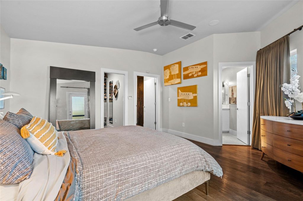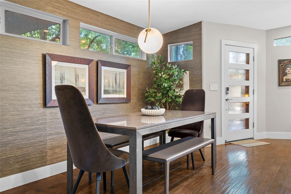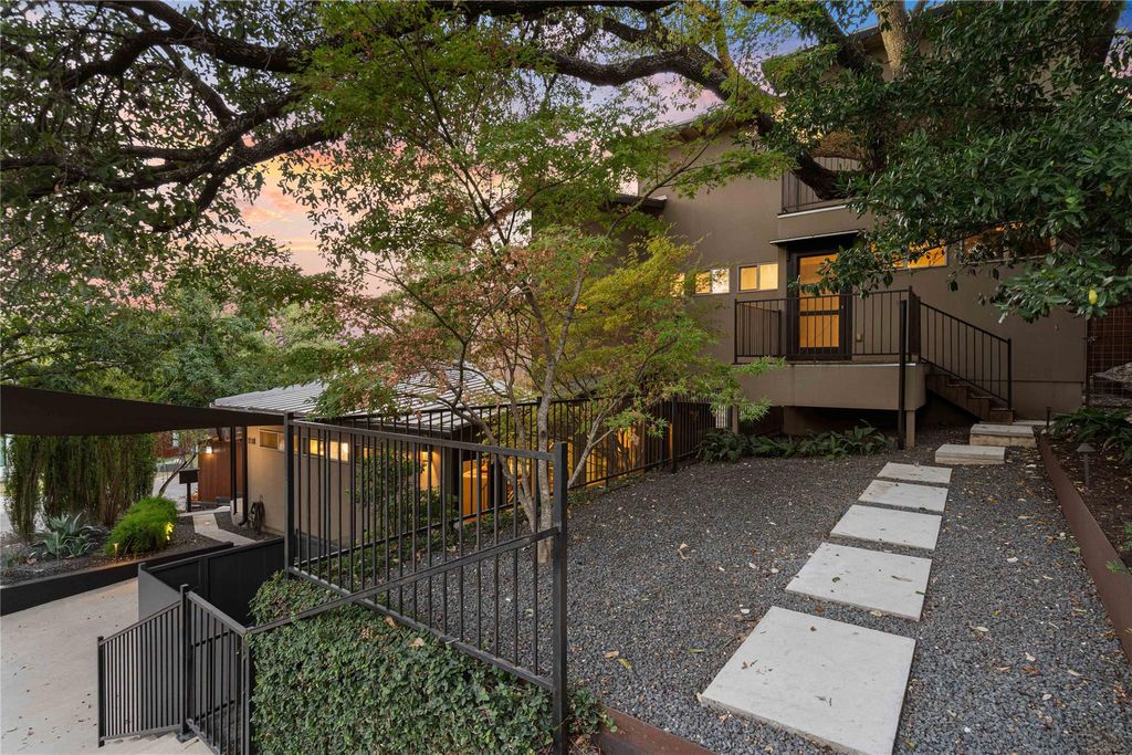 Striking Mid-Century Modern in Travis Heights This architecturally captivating mid-century modern home blends iconic design with elevated contemporary style. Rebuilt, updated, and thoughtfully expanded in 2013 by a previous owner, the home showcases clean lines, geometric forms, and curated interiors featuring designer wallpaper and modern finishes that create a warm yet sophisticated atmosphere. A dramatic oak tree welcomes you in the front yard and sets the tone for the open-concept living, dining, and kitchen areas filled with natural light. The kitchen, beautifully updated in 2025, showcases new cabinetry, polished concrete countertops, and a stylish backsplash. Premium Viking appliances add a professional touch to the space. The main floor offers two spacious bedrooms and two full baths, including an ensuite with a walk-in shower. The primary suite is privately located on the second level and features dual vanities, a walk-in shower, and a custom walk-in closet. A flexible layout allows the upper portion of the home"”with its own bedroom, bath, and living area"”to be closed off with a private entrance, ideal for guests or potential Airbnb income. Enjoy seamless indoor-outdoor living through a private breezeway and three separate balconies. The heated pool with lighting and swim jet, installed in 2021, provides a resort-style retreat surrounded by lush greenery. With a durable metal roof and timeless mid-century aesthetic, this Travis Heights gem offers style, comfort, and versatility in one of Austin's most sought-after neighborhoods.