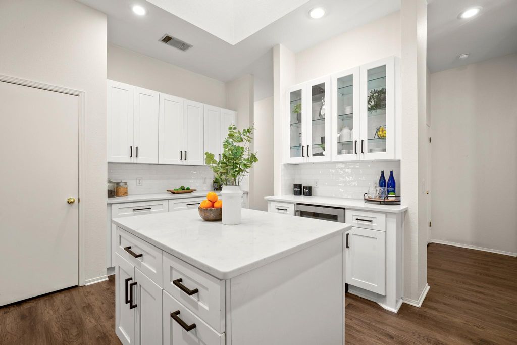 In the heart of Austin's sought-after Circle C Ranch, a warm welcome awaits at this beautifully updated home"”a place where comfort meets style and every detail feels intentional. Step through the front door and into sunlight-filled living spaces, where vinyl plank floors flow gracefully through the main living areas. The open floor plan invites you to move effortlessly between two spacious living rooms and two dining areas, perfect for everything from quiet mornings to lively evenings with friends. At the center of it all, the kitchen shines"”literally"”thanks to a skylight that bathes the space in natural light. Sleek quartz countertops, a striking backsplash, updated appliances, and even a wine fridge make this kitchen as functional as it is beautiful. The primary suite offers a serene retreat, with a spacious bedroom leading to a spa-inspired bathroom. Updated tile surrounds a soaking tub that promises relaxation, while the clean, modern design brings a sense of calm. Outside, an extended stone patio with a pergola sets the stage for alfresco dining or simply enjoying the shade of the peaceful backyard. Circle C is celebrated for its lush greenbelts, miles of hike-and-bike trails, multiple community pools, and the Grey Rock Golf and Tennis Club. Outdoor lovers will appreciate being minutes from the Veloway, a 3.1-mile paved loop perfect for cycling and rollerblading, as well as the vibrant Lady Bird Johnson Wildflower Center. Escarpment Village serves as the neighborhood's hub for shopping and dining"”featuring favorites like Waterloo Ice House, Satellite Bistro & Bar, and Mangieri's Pizza Café. Catch a movie at Alamo Drafthouse, pick up groceries at H-E-B, or explore local boutiques just around the corner. With Circle C Metropolitan Park nearby for weekend outings, Barton Creek's scenic trails a short drive away, and quick access to Mopac for reaching downtown Austin, this location blends Hill Country serenity with the best of city living.