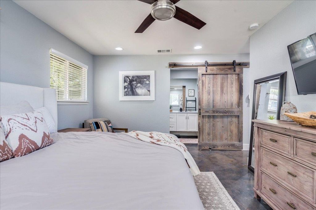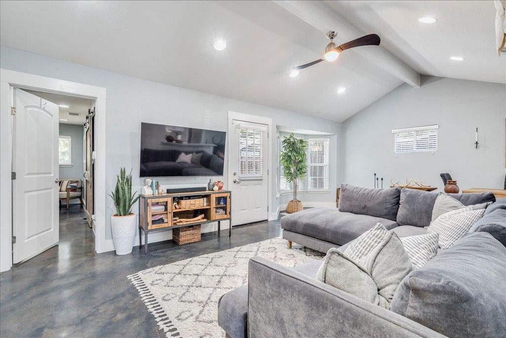 Walkable East Austin living at its best! This 4 bedroom, 3 bath single-level home offers the kind of flexibility that fits all kinds of lifestyles in an unbeatable location; just steps from the Boggy Creek Greenbelt's shaded trails and an easy stroll to neighborhood favorites like Murray's Tavern, Fleet Coffee, and other local spots. With Rosewood baseball fields and the new pickleball courts nearby, there's truly something for everyone right outside your door. Inside, the home offers flexibility for all kinds of lifestyles. Stained concrete floors run throughout, paired with vaulted ceilings and perfectly placed windows that fill the open layout with natural light. The kitchen anchors the main living space with a center island, stainless steel appliances, and a breakfast bar that connects the living areas, perfect for entertaining or casual meals. The primary suite sits at the back with a walk-in closet and ensuite closed off by a stylish barn door. Two secondary bedrooms share a nearby full bath, while a fourth bedroom sits on the opposite side with its own entrance and another full bath, an ideal setup for a home studio, office, workout room, or multi-gen living. Outside, a large deck with a steel pergola creates an outdoor hangout spot, with plenty of yard space for play or pets. All around you, East Austin hums with energy, murals, food trucks, live music, and a thriving art scene; while UT, the Capitol, and downtown are only minutes away. Space, style, and East Austin's energy, all in one address.