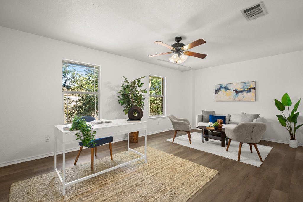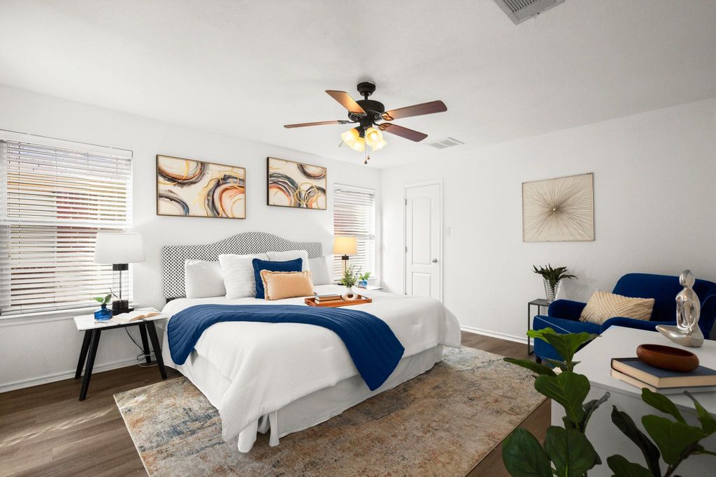 Looking for space and peace of mind in a move-in-ready home? This 4-bed, 2.5-bath in the Pioneer Crossing East community backs to green space and brings a lot to the table at $300,000. Fresh paint, new vinyl plank flooring throughout (no carpet), and a brand-new foundation repair with a lifetime warranty make it a worry-free choice. The layout offers a bedroom and full bath downstairs plus a powder room for guests, while upstairs features three additional bedrooms and a large bonus room that could easily become a fifth. Step outside to enjoy the private backyard which backs to greenbelt, or take advantage of Pioneer Crossing's neighborhood pool, playground, and trails just a short walk away. You're also within walking distance of Pioneer Crossing Elementary. At 2,179 sq ft, this home blends space, updates, and community amenities at a price point that's hard to beat.