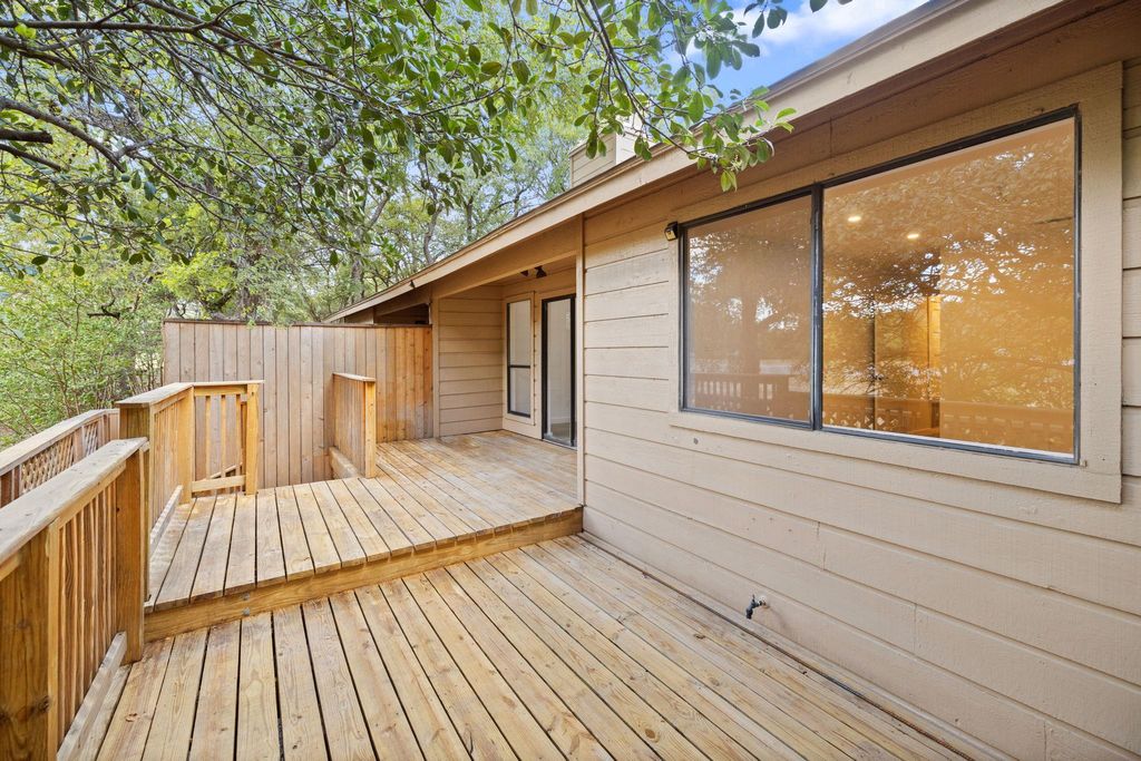 Experience effortless living in this beautifully renovated two bedroom | two full bathroom single-story condo. Thoughtfully updated bathrooms, kitchen, flooring, and lighting fixtures give this gem its distinctive charm. Plus, there's the bonus of a two car garage. Start your mornings or unwind in the evenings on your private back deck overlooking a green belt - with no neighbors directly behind for added privacy. The kitchen boasts quartz countertops offering ample preparation space and a cozy dining area. A wood burning fireplace anchors the living room for entertaining. A modern light fixture illuminates the living space while the French doors opening to the rear patio / deck for extended outdoor living. The primary bedroom includes an en-suite bath complete with double vanity and generous walk-in closet. Recessed LED lighting throughout and new insulation throughout add to the comfort of this condo. Just blocks from home, you can arrange a casual tennis or pickleball game with neighbors at the Lakewood Clubhouse. Perfect your swimming skills or relax poolside at the community pool. The community also offers a playground and picnic area. Lakewood Condominium HOA fees include: weekly landscaping, exterior watering and irrigation plus roof, siding and exterior property insurance. Property owners benefit from affordable "walls in" insurance coverage - rate is $535 annually. Prime North-Central Location: 20 minutes to Lake Travis, The Domain and downtown Austin. Move right in and relax - everything has been updated for you, both inside and out. Feeds into highly sought-after Austin ISD schools: Blue Ribbon Award winning Highland Park Elementary / Murchison Middle / Anderson High. Your search ends here! (Buyer to independently verify all information including but not limited to square footage, lot size, year built, zoning, restrictions, taxes, schools, etc.)