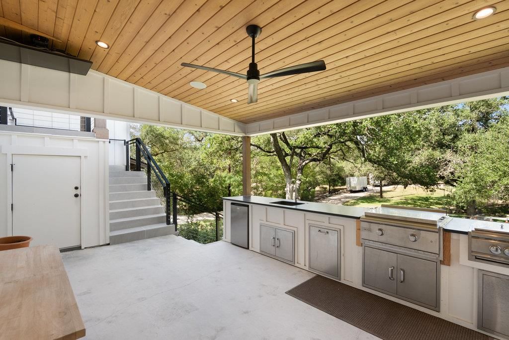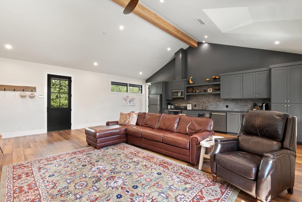 INTERIOR | Beamed Ceilings, Built-in Features, Ceiling Fan(s), Kitchen Island, Open Floorplan, Pantry, Sound System, Vaulted Ceiling(s) |