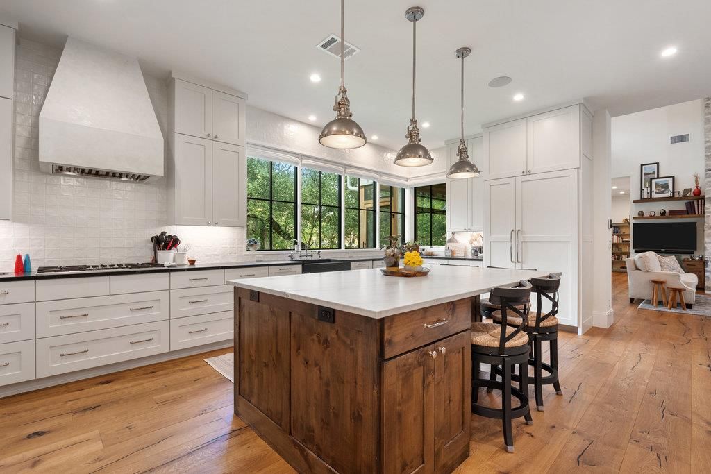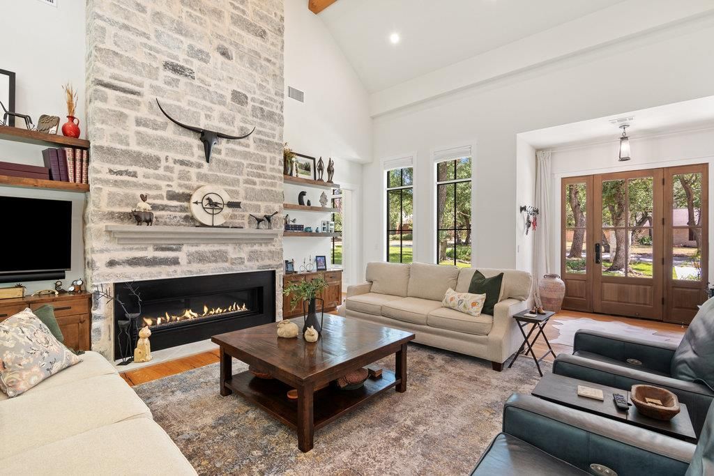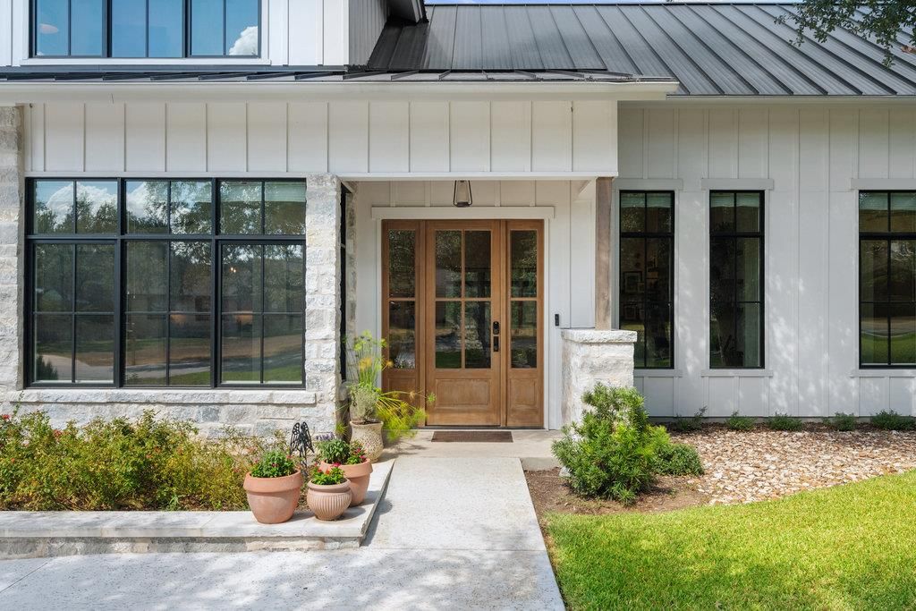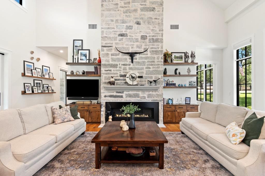 Welcome to this stunning, custom modern farmhouse on Antler Ln, built in 2022. This beautiful home offers exceptional attention to detail, a spacious open floor plan, and a large yard perfect for outdoor living and entertaining. Inside, you'll find a large chef's kitchen with Thermador appliances, a massive island with soapstone countertops, and expansive windows overlooking the private backyard. The home features extra tall casement windows, a vaulted owner's suite with a spa-like bath, private bathrooms for large bedrooms, and a dedicated office and versatile drop zone. Enjoy peace of mind with a whole house generator, 1,000-gallon buried propane tank, water softener, and PureEarth water purifier. Insulated with spray foam and Zip system construction, electric bills average only $225/month. The smart system includes outdoor speakers, wired alarms, break glass sensors, and remote-controlled sound. Relish outdoor living with a 282 sqft summer kitchen, a screened porch with pocket doors, and a decked walkway connecting to the outdoor kitchen. The oversized driveway, 3-bay heated & cooled garage, and a 1,128 sqft guest/living space above the garage add incredible convenience and flexibility. This home truly combines modern luxury with timeless charm, all in a fantastic school zone. Don't miss the opportunity to make this exceptional property yours!