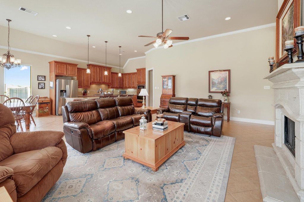 INTERIOR | Breakfast Bar, Ceiling Fan(s), Crown Molding, Double Vanity, Entrance Foyer, Granite Counters, High Ceilings, Master Downstairs, Pantry, Recessed Lighting, Walk-In Closet(s) |
