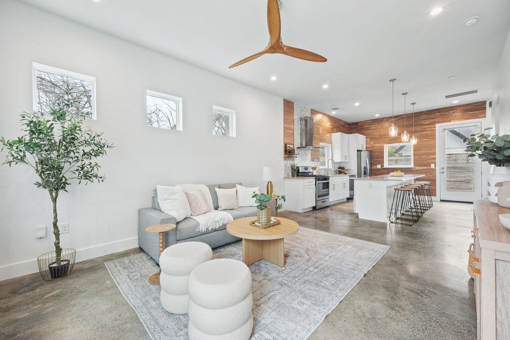 Welcome to 1218 Eleanor St Unit 1, a free-standing condo in the heart of East Austin that lives like a single-family home. This 3-bedroom, 2.5-bath property features an open floor plan, abundant natural light, and a spacious eat-in kitchen designed for easy everyday living. A bonus loft offers flexible space for a home office, second living area, or playroom. The interior has been fully repainted, creating a fresh, move-in ready feel throughout. The one-car garage includes a Tesla electric vehicle charger. Outdoor spaces feature a fenced front yard and xeriscaped backyard for low-maintenance living. Ideally located minutes from Downtown Austin, Mueller, UT, and East Austin's top restaurants, coffee shops, and entertainment. Lock-and-leave convenience with the comfort of a stand-alone home.