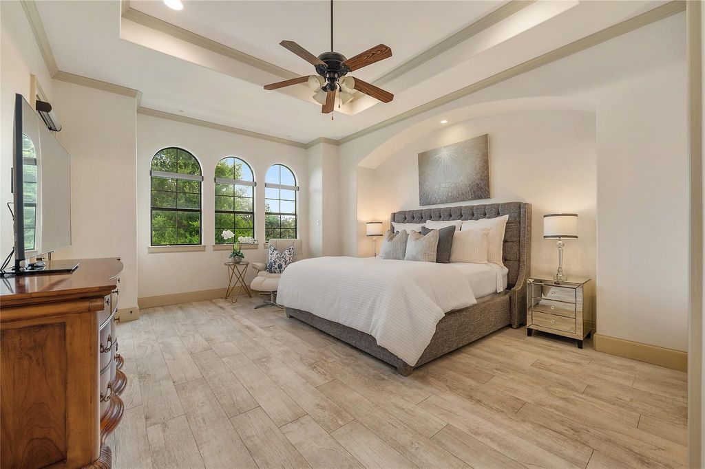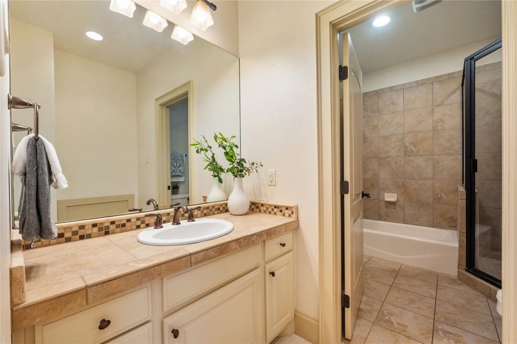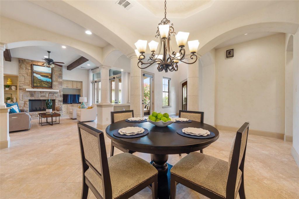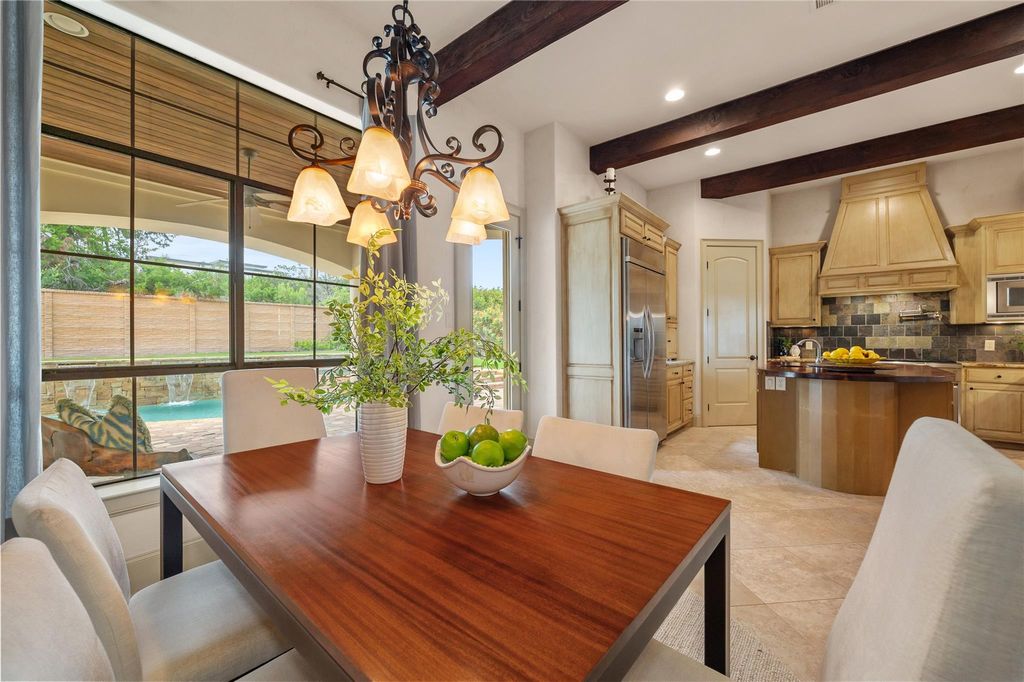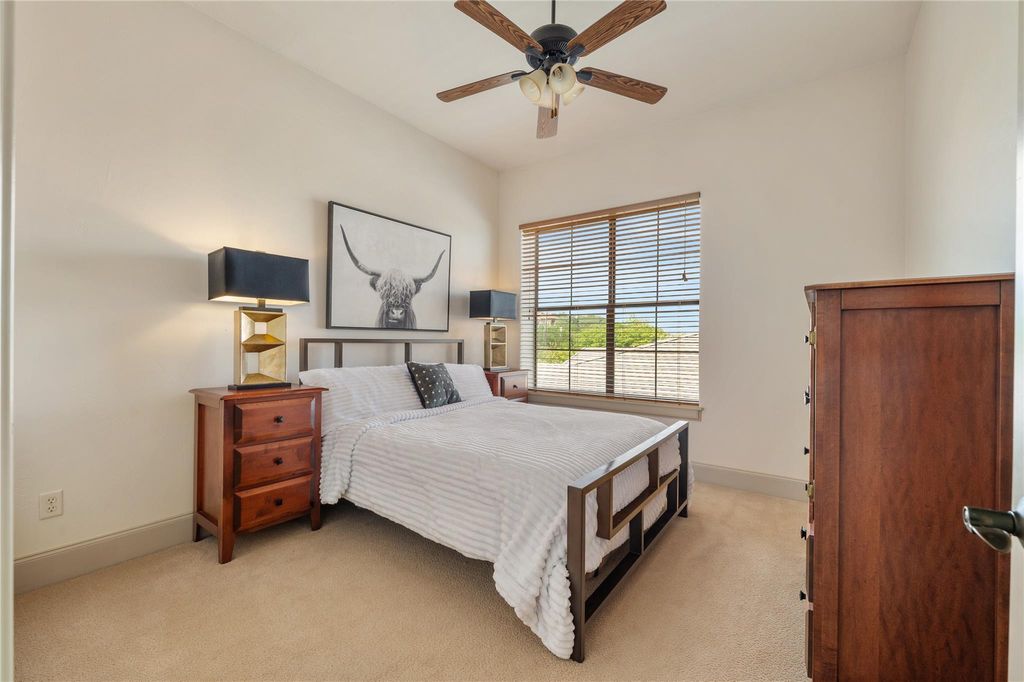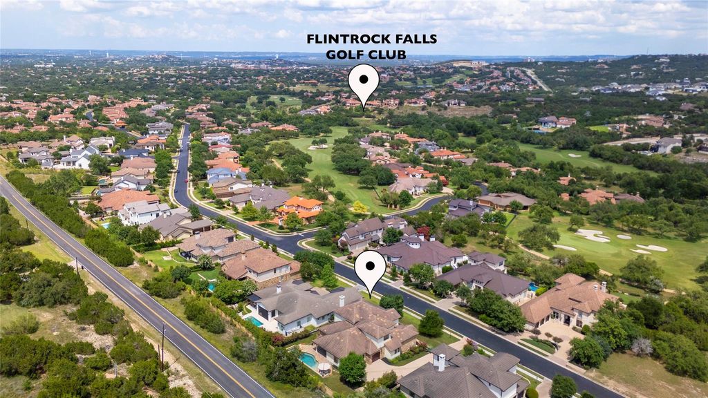 Tucked inside the prestigious gated golf community of Flintrock, this beautifully designed home showcases timeless Hill Country charm w/ modern luxury & an entertainer's dream backyard. From the moment you arrive, you're greeted by impeccable curb appeal w/ manicured landscaping & elegant stonework that sets the tone for what lies inside. A charming covered front patio invites you in, while inside, rich wood beams, a stone fireplace, & walls of windows bring warmth & natural light into the main living space. The gourmet kitchen is a standout, featuring a butcher block island, custom cabinetry, pot filler, & stainless steel appliances"”all overlooking the open-concept family & dining areas. Two bedrooms on the main level, including a spacious primary suite w/ a luxurious bath retreat. Highlights include dual vanities, granite, walk-in shower w/ seamless glass, & a large custom closet designed for both style & function.The secondary bedroom downstairs is perfect for guests or home office, complete w/ easy access to a full bath.Upstairs, brand new carpet adds a fresh touch to the game room & additional bedrooms.Enjoy stunning Hill Country views from the upstairs living area, creating the perfect space to relax, work, or play. Step outside to your own private oasis"”lush landscaping frames a sparkling pool & spa, while the covered patio & built-in grill create an effortless setup for entertaining. From sipping coffee in the AM to hosting a sunset gathering, this backyard offers year-round enjoyment. Multiple covered patios in front & back extend your living space outdoors. Surrounded by beautiful plants & peaceful views, each outdoor area invites you to slow down & savor the serenity. Located on a quiet culdesac street w/ access to Flintrock Falls private golf course and amenities, this home combines comfort, style, & lifestyle. Zoned to award-winning Lake Travis ISD & just minutes from Lake Travis marinas, dining, & the Hill Country Galleria.
