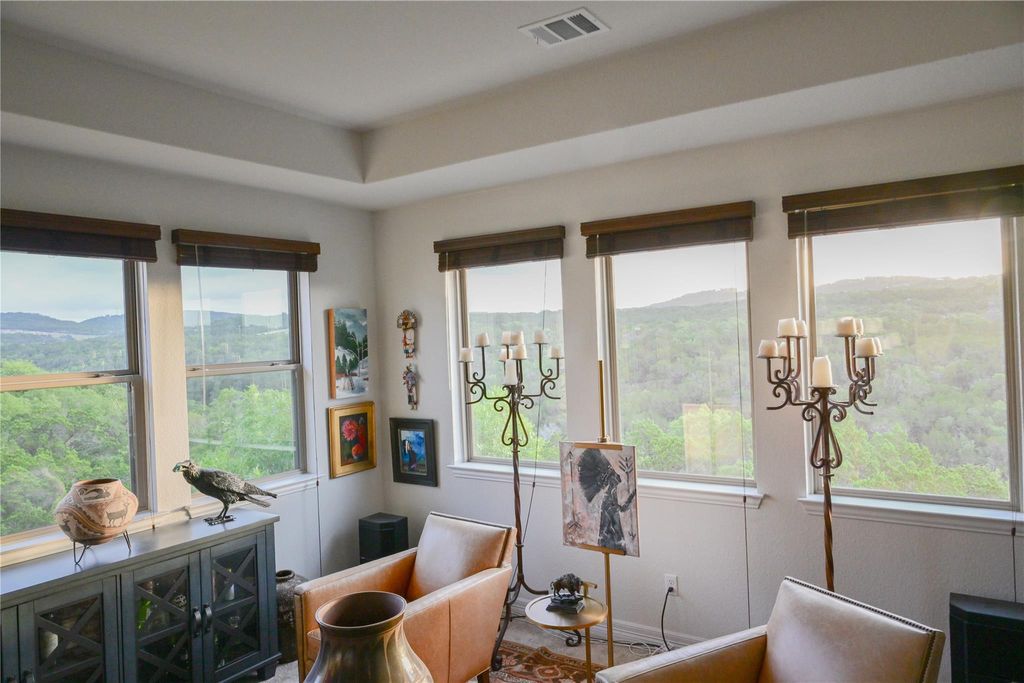 Incredible home located in The Hollows on just under 1.75 acres backing to the greenbelt and walking trails, offering privacy, views, and resort-style living on the North Shore of Lake Travis. The Hollows is a premier master-planned community spanning over 1,400 acres of Texas Hill Country with countless amenities, lake access, and miles of golf cart and hiking trails. This stunning 4 bed, 4.5 bath, 2-story home features soaring ceilings, a dramatic two-story living room filled with natural light, a built-in display niche under the staircase, a car lift for auto enthusiasts or extra garage space, and breathtaking views from nearly every window. Wake up with the morning sun lighting the home as you enjoy coffee overlooking the valley, then spend the day exploring the long driveway approach surrounded by natural landscaping or take a short walk to one of the quiet community pools. The Hollows lifestyle includes the Beach Club with three pools, seasonal restaurant, fitness center, pavilion with fireplace, and poolside bar service; the Trailhead Club with lap pool, pickleball and basketball courts, playground, and shaded lounges; the Hilltop Smokehouse for gatherings and stargazing; plus two Kayak Clubs, miles of paved and native trails, and access to Lake Travis' deepest water marina. Whether you want to kayak, boat, fish, swim, hike, or simply relax with neighbors at wine clubs, yoga classes, or lakeside picnics, The Hollows delivers the ultimate lake lifestyle with a vibrant sense of community. Perfectly positioned between the Hill Country and North Austin, this incredible home combines resort living, privacy, and convenience all in one.