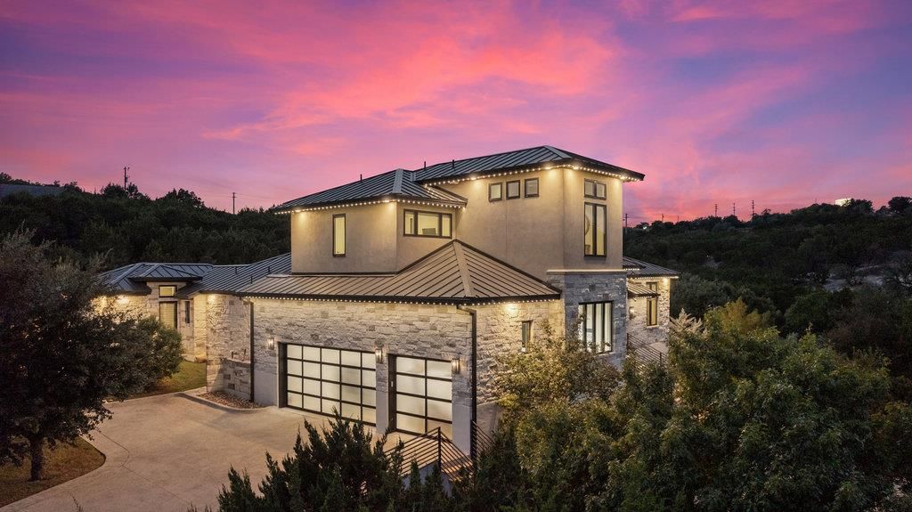 Serene Luxury with Lake Travis Views - Experience the perfect blend of privacy, sophistication, and Hill Country charm in this custom home by County Line Custom Builders. Set on 1.54 beautifully landscaped acres in the coveted Tres Verde community, this gated estate offers 4,273 square feet of luxury living with 5 bedrooms and 5 full baths. Step inside to an open floor plan featuring hardwood floors, plantation shutters, designer lighting, and abundant natural light. The Chef's Kitchen delights with Quartzite countertops, custom white cabinetry, a built-in wine fridge, and a butler's pantry. The living room centers around a cozy fireplace, while expansive Marvin sliding glass doors frame views of the sparkling pool and spa. The thoughtful layout offers privacy and flexibility, with the primary suite and two guest rooms on the main level, plus two ensuite bedrooms upstairs. A dedicated home office and two inviting living areas complete the interior. Outdoors, enjoy multiple spaces for entertaining"”from covered verandas and dining areas to a fire-pit lounge with panoramic Hill Country and Lake Travis views. The pool and spa create a private resort feel, enhanced by a hardwired camera system, extensive outdoor lighting, and built-in holiday illumination. Car enthusiasts will appreciate the oversized three-car garage with high ceilings and a car lift. The standing seam metal roof, limestone masonry, and stucco exterior showcase timeless Texas craftsmanship. Located within highly rated Lake Travis ISD, just 10 miles from the Hill Country Galleria and 25 miles from downtown Austin, this home combines tranquility and convenience. Nearby marinas, golf and tennis clubs, fitness centers, wineries, and live music venues complete the lifestyle"”with low taxes and HOA fees. This serene Hill Country retreat offers the best of luxury living"”a rare opportunity to own a private oasis with views, space, and style.