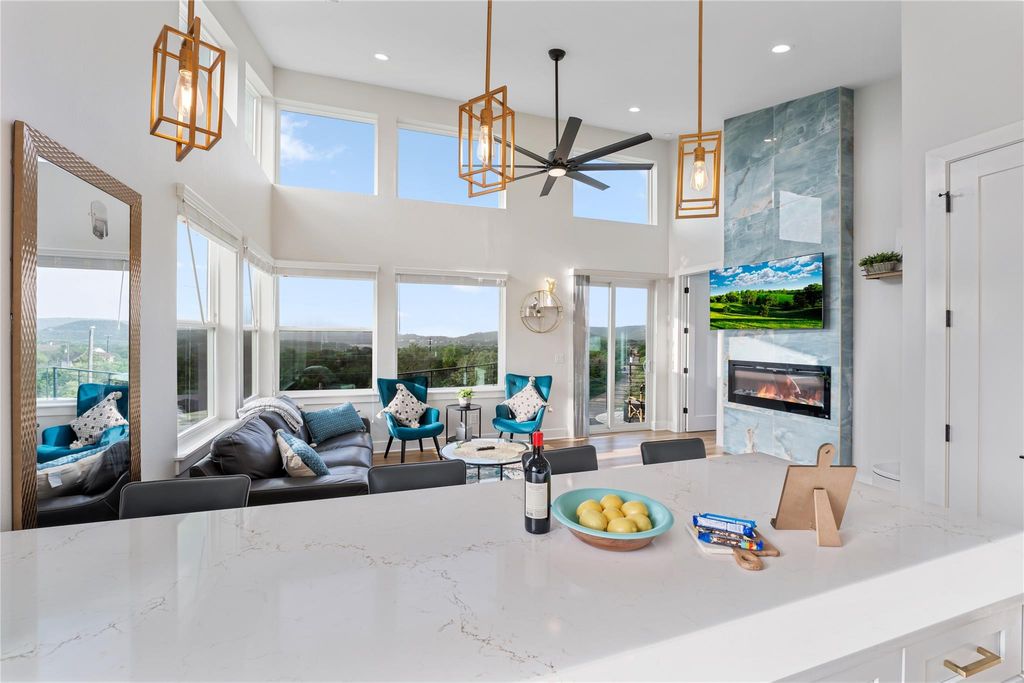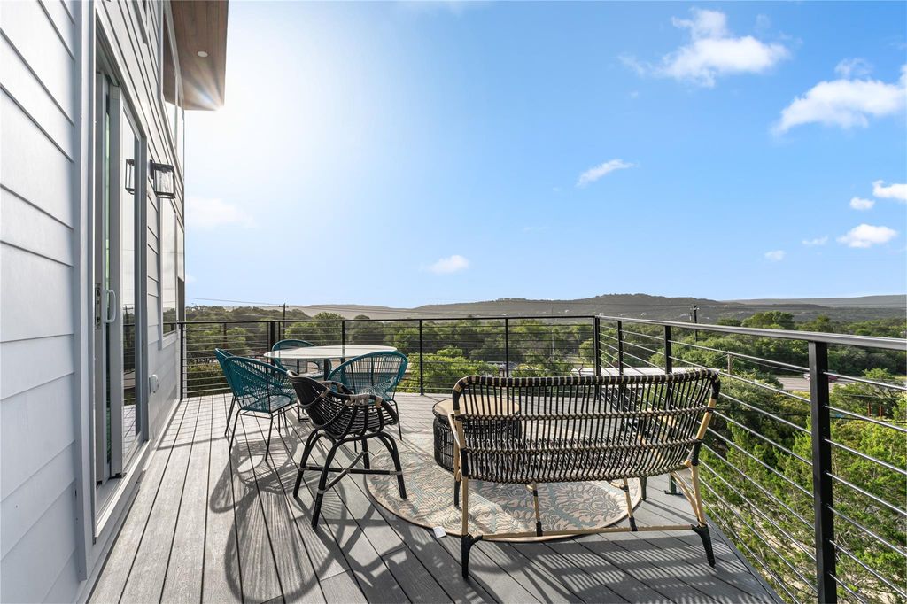 Lakeview Modern Home in Leander ISD. Big views from all levels of the house with tons of oversize windows to capture the natural light. With balconies on both floors, the 2nd floor captures views of the Hill Country and Lake Travis plus stunning sunsets. Peaceful, cozy and comfortable for your primary, vacation or investment home. Modern finishes and upgrades include a metal roof, spray foam insulation, custom fireplace statement piece, quartz counters and stainless steel appliances, and parking for boat / RV at top of property. Come see this hidden gem in the Texas hill country.