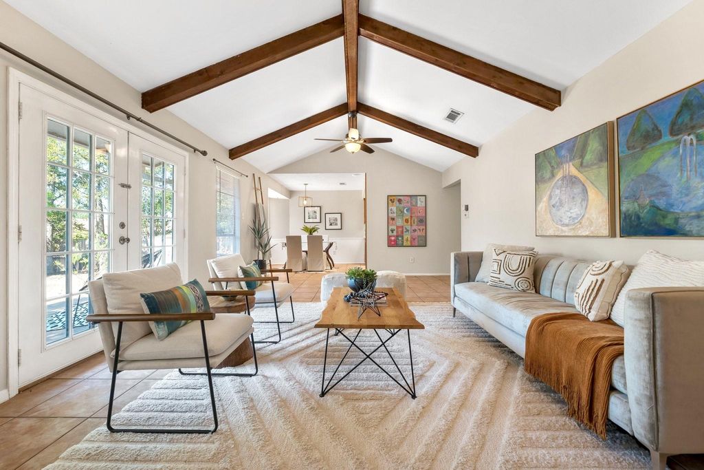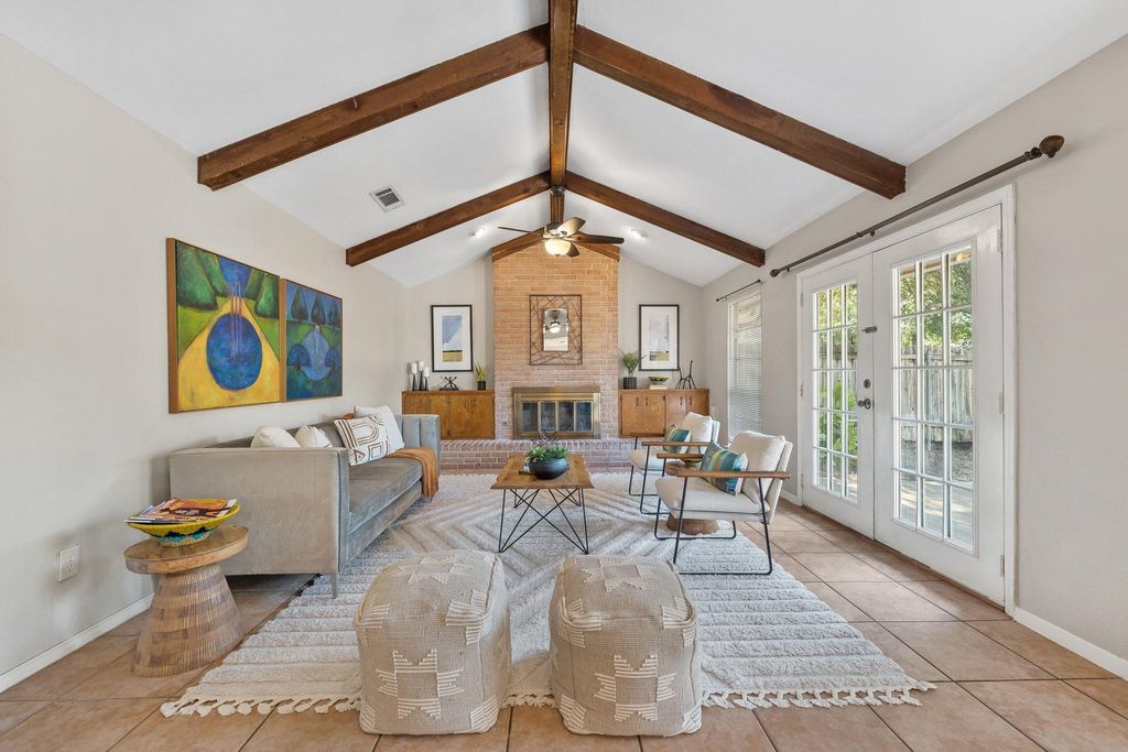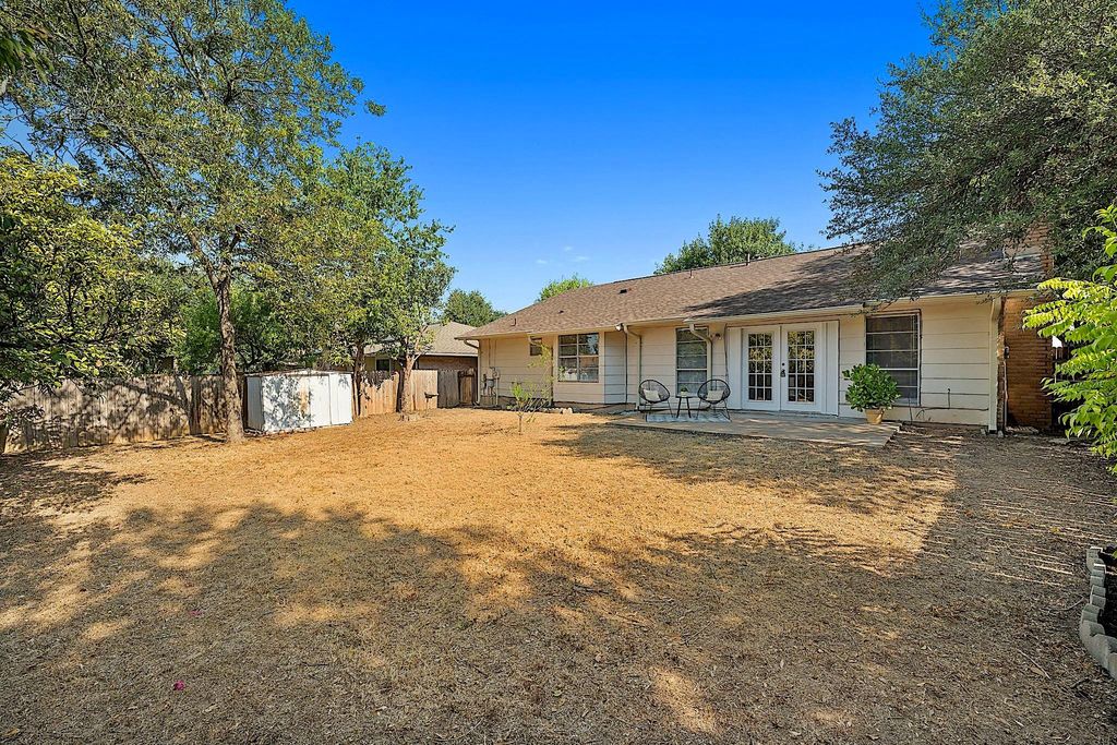 Set on a tree-lined street in North Austin, this inviting home is ready for you to settle in and make it your own. The 1,301 square feet layout is both practical and full of character. The vaulted living room ceiling with exposed wood beams adds warmth and a sense of openness, while a brick fireplace creates a natural focal point that's equally suited for lively gatherings or quiet evenings at home. French doors allow sunlight to pour in and provide a seamless connection to the backyard. The living room, dining room, and kitchen flow together with ease, creating a natural hub for your daily routines. The dining room is framed by a bay window "” the perfect spot for morning coffee with a view of the backyard. Compact yet efficient, the galley kitchen makes smart use of space. The adjoining dining room provides added flexibility when you need to spread out. Three bedrooms provide flexibility for rest, work, or creative pursuits. The primary suite, located at the rear of the home for privacy, includes an en suite bath with its own vanity and a walk-in closet. The front bedroom has beautiful natural light with two arched windows, while the smaller middle room is perfectly sized for a home office or nursery. If you crave an outdoor space of your own, this home is ready for whatever you envision. Gather with friends on the back patio while you let the pets play in the fenced backyard. The flower beds are ready for your favorite blooms or fresh landscaping ideas, and a storage shed keeps yard tools neatly tucked away. Out front, a cozy porch is the ideal perch for greeting neighbors. The home also has many practical features to simplify everyday living like durable tile and vinyl wood floors, hall closets and cabinets to keep essentials neatly stored out of sight, and a 2-car garage for convenient parking and extra storage. The area includes coffee shops, restaurants, a YMCA, and several parks nearby; as a bonus, Cook Elementary is less than a block away.