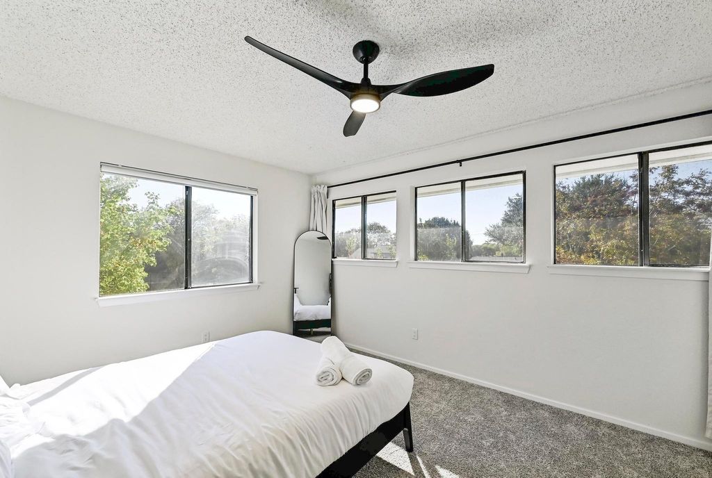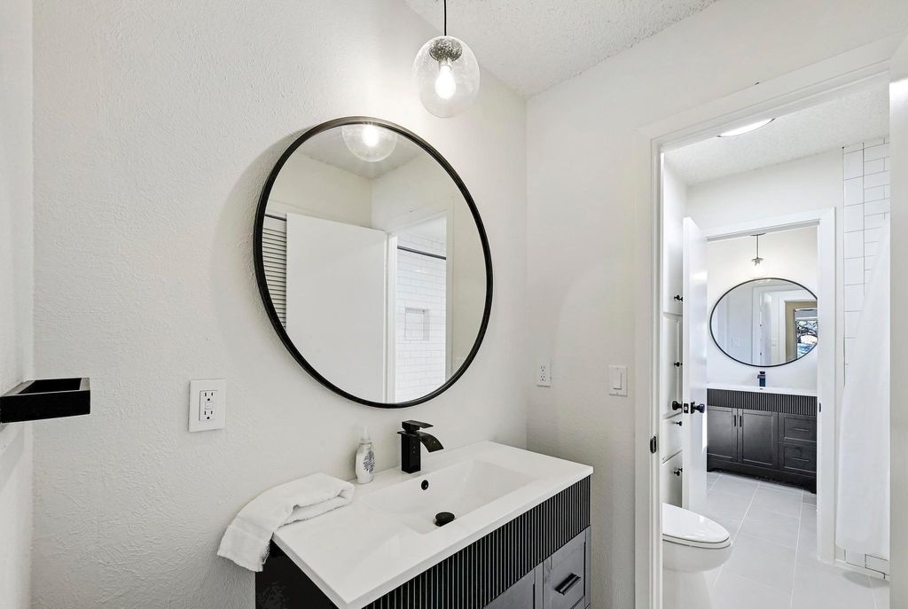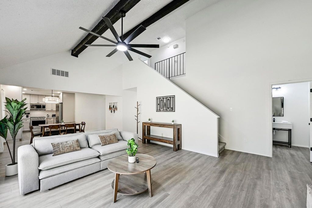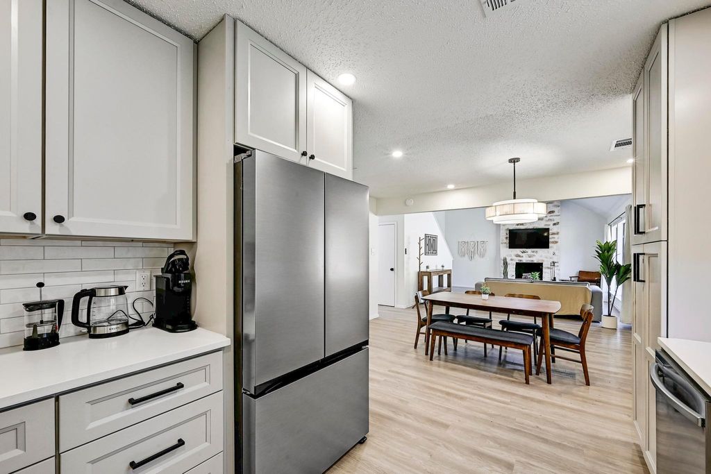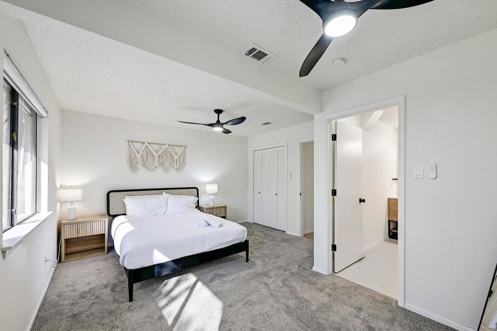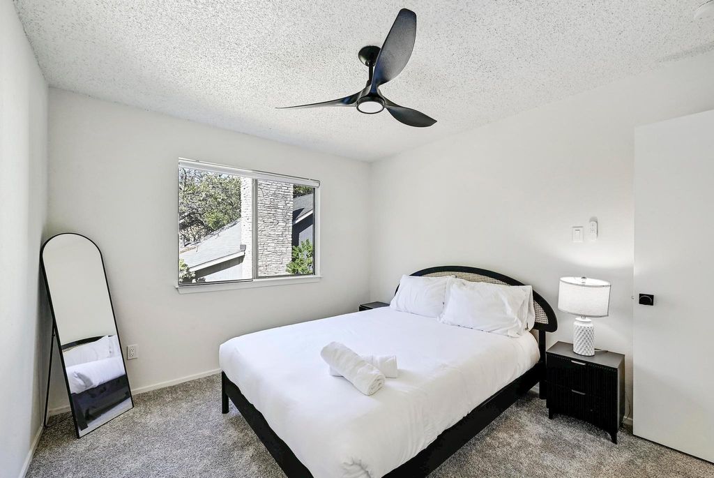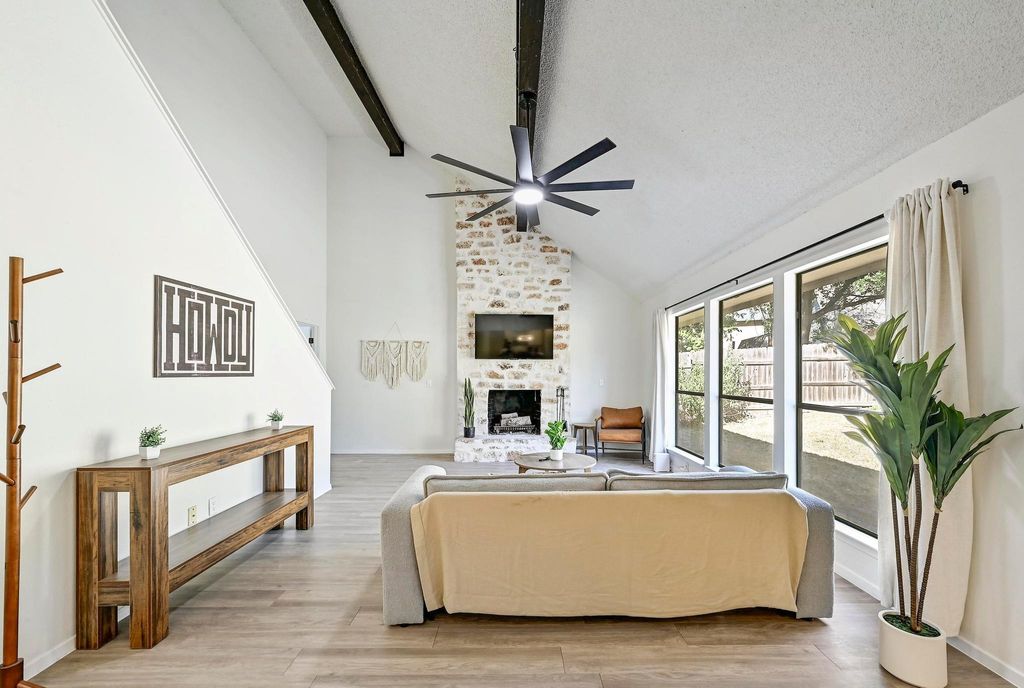 Welcome to the epitome of South Austin living! This remodeled 3-bedroom, 2.5-bathroom home on a spacious corner lot perfectly blends sophisticated design with relaxed, "hip" Austin style. Step inside to discover a bright and airy open-concept floor plan, highlighted by dramatic vaulted ceilings in the living room. The seamless flow leads to a truly functional kitchen, featuring brand-new Samsung stainless steel appliances"”including a fantastic gas range perfect for any cooking enthusiast"”semi-custom cabinetry, and sleek quartz countertops. The inviting, downstairs primary suite lends enough flex space for a cozy reading sofa, exercise equipment or office space. Unwind in the primary bathroom designed with a spa feel, complete with a dual vanity and an oversized frameless glass shower. "His and hers" closets provide ample storage. Upstairs, two spacious secondary bedrooms are connected by a convenient Jack and Jill bathroom. The home has new, low-maintenance wood-look vinyl flooring in the main areas and plush new carpet in the bedrooms. New lighting fixtures and hardware throughout add a modern, cohesive feel. A large laundry room/mud room adds practical convenience. Located in a vibrant South Austin neighborhood, you are just over 6 miles from the energy of downtown Austin and 10 miles from the airport, offering an easy commute to all the city has to offer. This move-in-ready home is the perfect home for modern living!