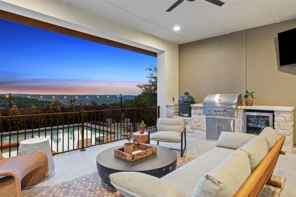 Welcome to 204 Ringtail Stream Drive, located in the heart of Serene Hills, which has had over $150,000 in upgrades. Nestled in a cul-de-sac, where luxury and entertainment intersect, to deliver extraordinary, this home provides you everything you are looking for. Situated on just over a half acre lot, this hill country modern two-story floor plan boasts 4793 square feet offering 5 bedrooms, 4 full bathrooms and 1 half bath, separate office, a custom wine bar, billiard area, and a main level game room. An entertainer's delight in every aspect. Create indoor/outdoor living by opening sliding glass doors to the spacious covered patio with built-in kitchen and admire the finest sunsets hill country living has to offer. The private backyard is an oasis in itself showcasing a grand sparkling pool and spa, expansive covered patio for plenty of guests, and gas fire-pit for relaxing. An enormous fully turfed side yard offers an area of play and further entertainment. The open floor plan provides for an abundance of natural light. The gourmet kitchen is a chef's delight featuring an oversized marble center island, double ovens, 6-burner gas range and shaker style cabinets. The laundry room will make your chores a pleasure with its stone counter island and abundance of storage. Stroll into the spacious primary suite with huge windows to overlook the stunning panoramic landscape of Texas hill country. Direct backyard access to miles of hike and bike trails. This magnificent property offers sprawling living areas, soaring ceilings, breathtaking views and luxury at its finest.