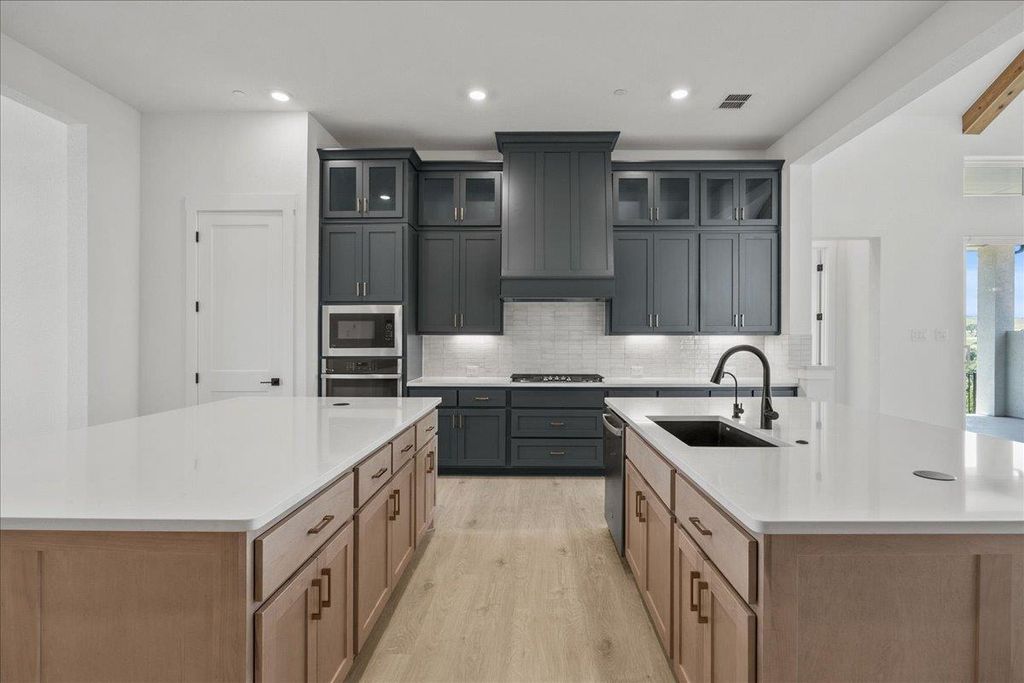 MOVE IN READY! Chesmar single-story home, offering 3 bedrooms, 2.5 bathrooms, and an array of thoughtful features. The heart of the home is the gourmet kitchen, boasting double islands that provide ample workspace, seating, and storage, making it ideal for entertaining and daily living. Not to mention the dedicated dining space! A versatile flex/media room adds endless possibilities, whether you need a home office, theater, or playroom. The luxurious primary bathroom is a true showstopper, featuring a spacious wet room that combines a walk-in shower and a freestanding tub for a spa-like experience. Enhance your indoor-outdoor living with the optional 3-panel glass sliding door in the living room, inviting natural light and creating a seamless flow to your outdoor space. Vaulted ceiling with beams! **photos are of the ACTUAL home!**