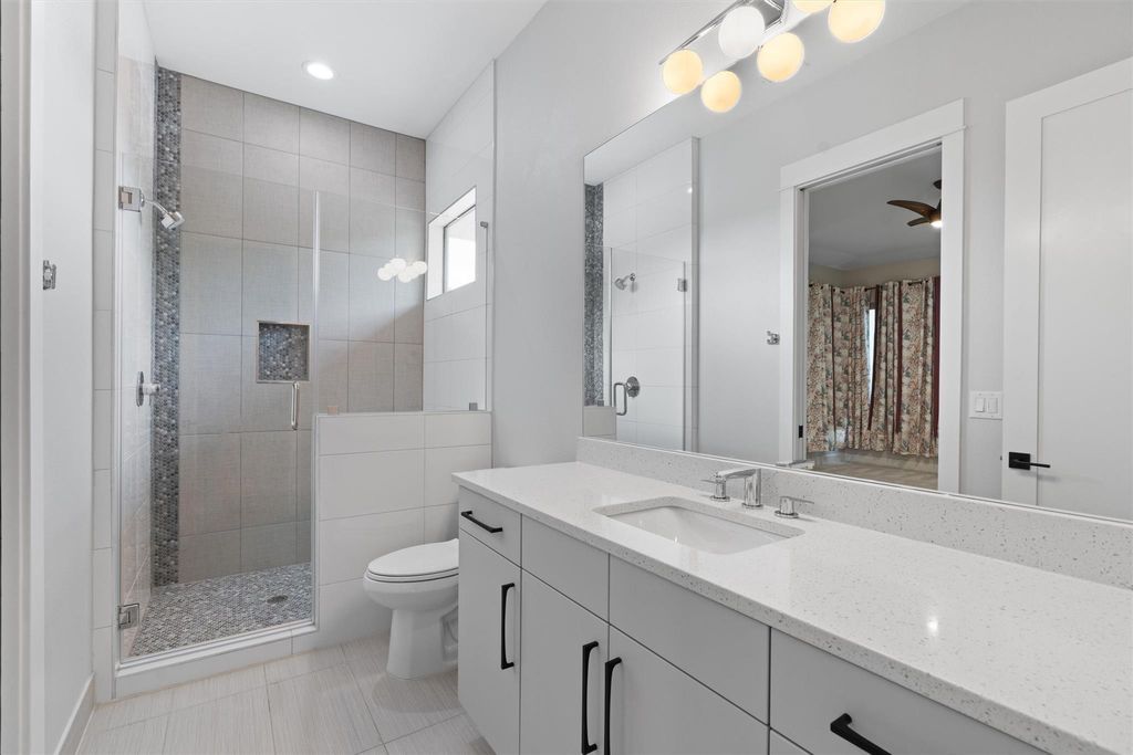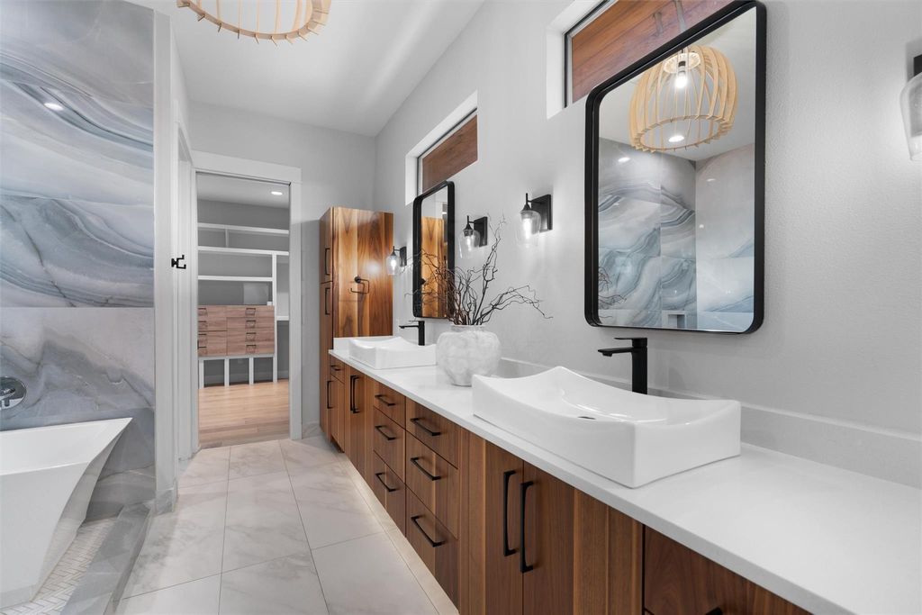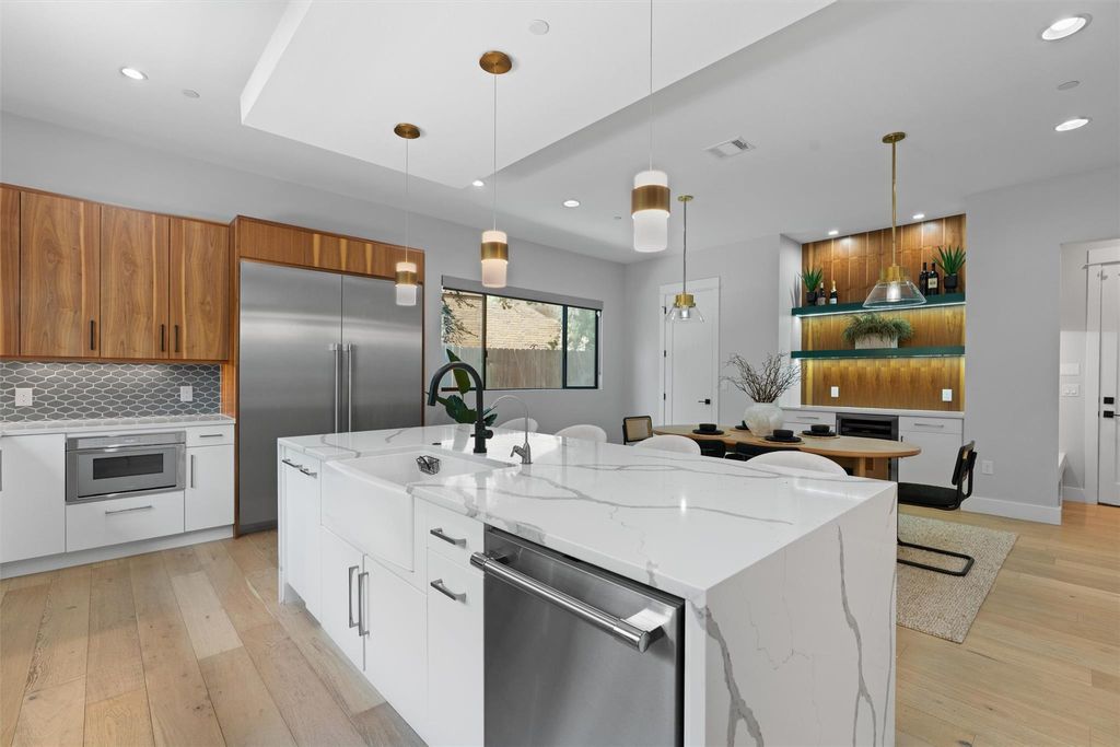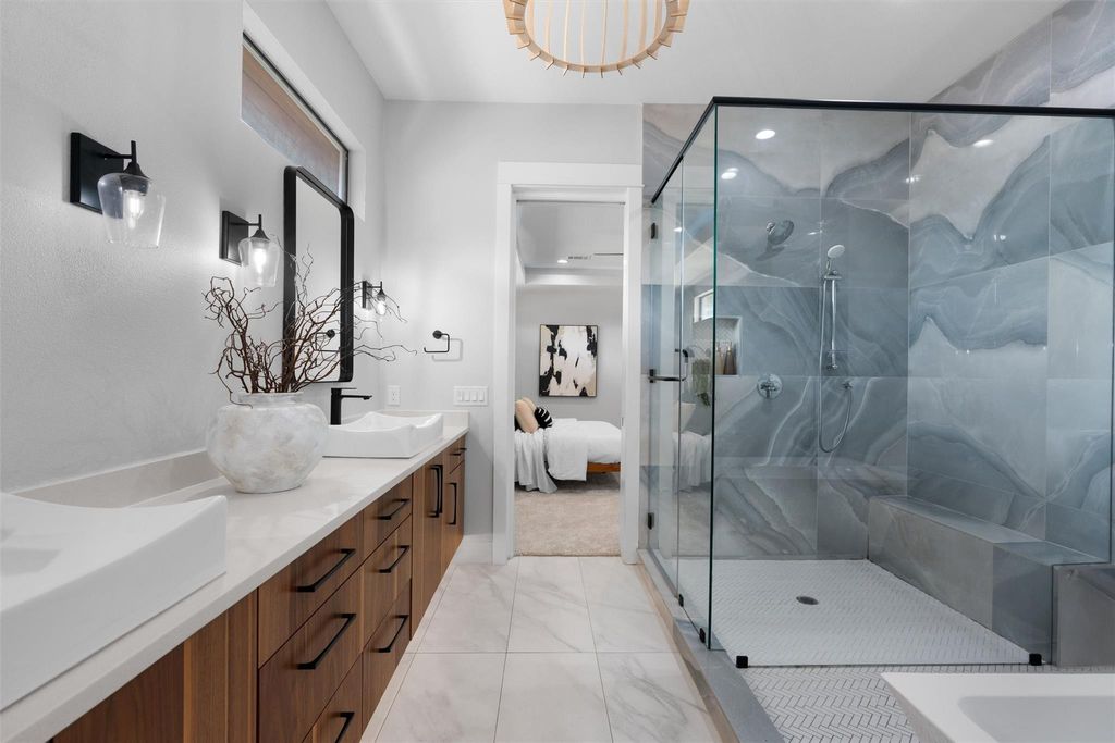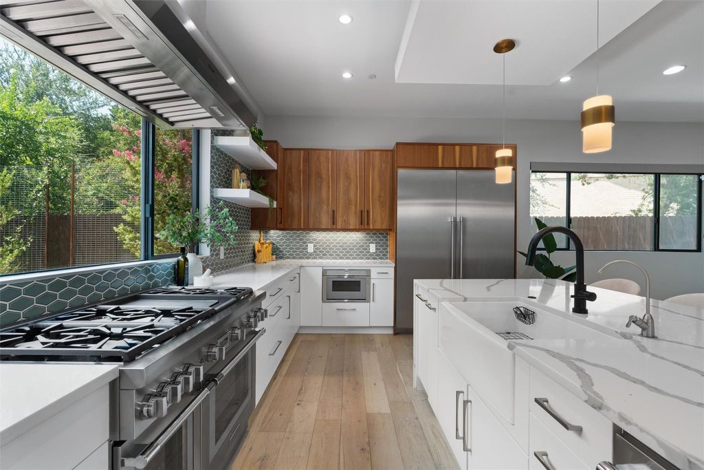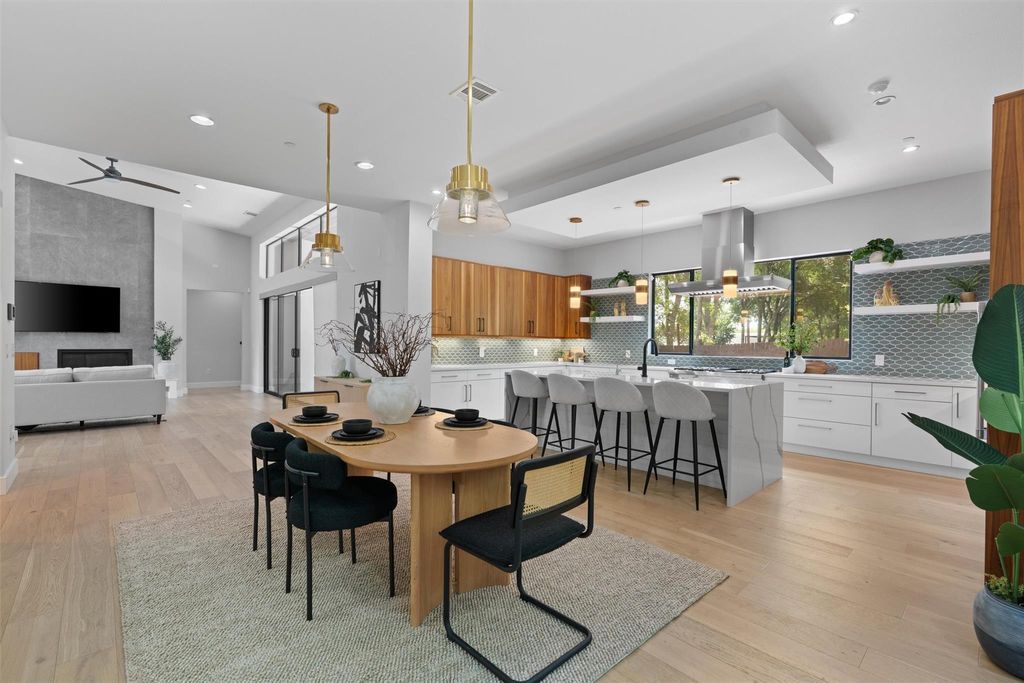 Modern luxury puts the fun in functionality! Spectacular 2020 build has it all - Eanes schools, world class design and top-of-the-line features. The vibe is relaxed elegance with gorgeous white oak hardwood floors, high ceilings and open concept living space. Featuring a commercial grade stainless steel appliance package with a Thermador fridge and 48" range and oven, the chef's kitchen includes a large island, perfect for casual family meals and social gatherings. The oversized primary suite has plenty of space for your Texas king-size bed and more! Designed as a spa-like retreat, the primary bath has a large walk-in tub, spacious shower, double vanity and huge walk-in closet. There's also an office downstairs that can serve as a guest bedroom, along with another bathroom and conveniently positioned laundry room. A large flex space upstairs is a perfect game room, work-out space or media room. There's also two large bedrooms upstairs with a Jack-and-Jill full bath, as well as another bedroom that's perfect for guests with direct access to a full bath. Love outdoor living? The large, covered patio off the living space features a high-end tongue-in-groove ceiling with an outdoor fireplace and a built-in outdoor kitchen - ideal for entertaining and al fresco dining. Let's go swimming! The sparkling pool and spa is yours to enjoy and the entire backyard is enclosed by a wood fence with plenty of room for the kids and pets to run around. Oozing with Westlake charm, the Woodhaven neighborhood is known for its quiet streets, well-kept yards, and a strong sense of community. The home is within walking distance of the acclaimed Eanes Independent School District schools: Cedar Creek Elementary, Hill Country Middle School, and Westlake High School. With nearby proximity to Downtown Austin, you are just minutes away from the vibrant dining, entertainment, and cultural scene of downtown Austin!