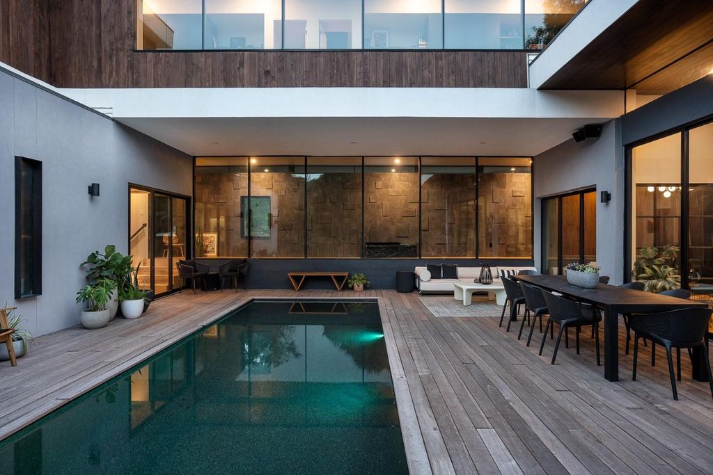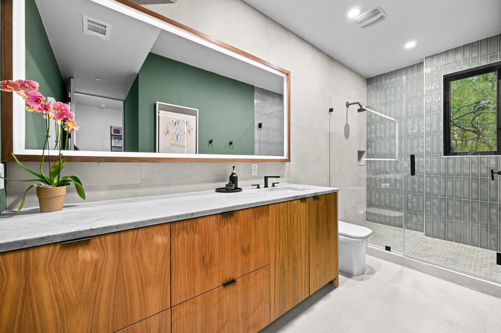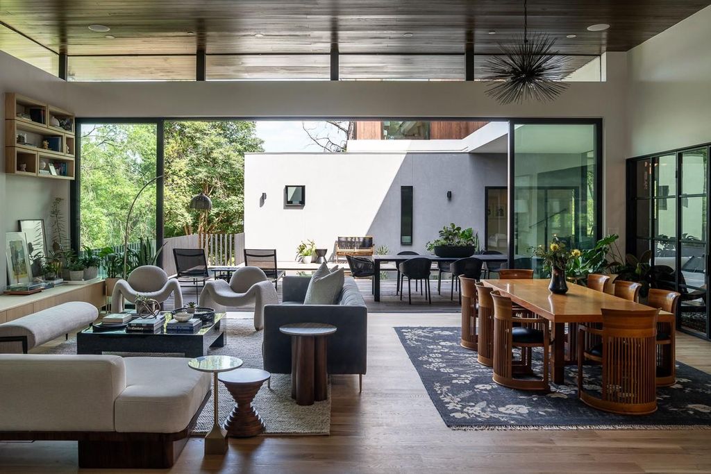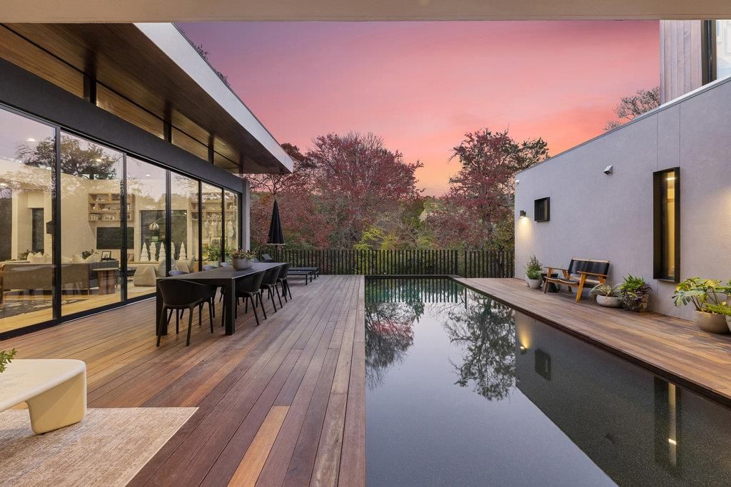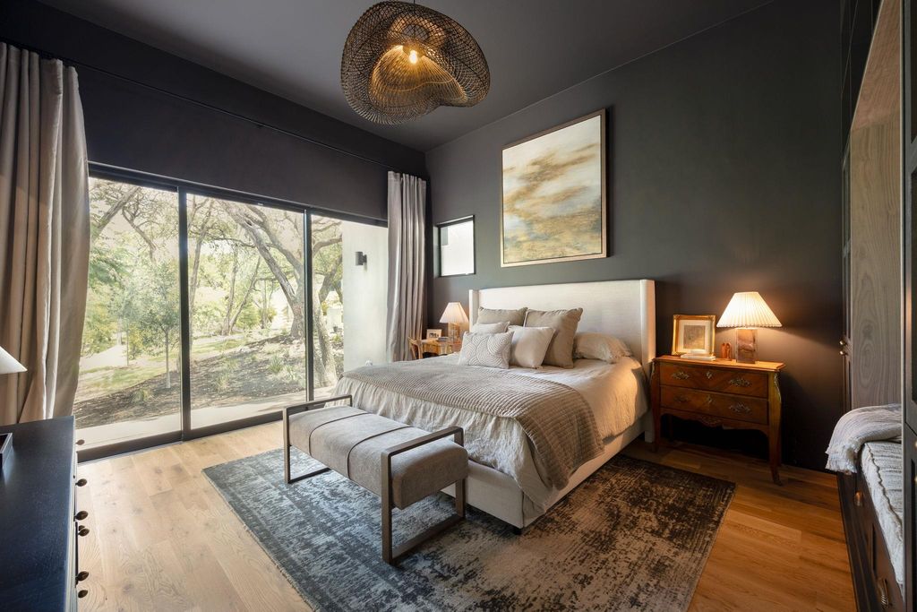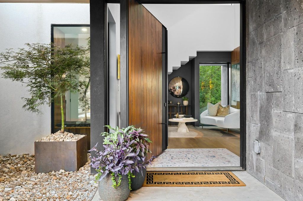 In the builder's words.... "This is not just a house. It's a discovery. And as such, it was found, not built "” like a ruin half-buried in the land, then pulled forward in time. The builder describes it Mesoamerican Contemporary. A cruciform plan grounded in Cantera stone... black, gray and volcanic. It anchors the structure like myth anchors a memory. The form is deliberate. Geometry sharpened by light. There is no waste, no excess. Only rhythm. Wood, glass, stone "” each in balance, each unafraid of its own texture. The walls rise clean and quiet. The lines do not shout. They cut. The rooms hold breath. The light moves. Spaces are open, but not empty. They are made for stillness. Made for gathering. Made for living without apology." Truly nothing like this and an amazing value for a newer modern home in Westlake. Builder's personal home can be customized for the next owner. Features include a custom pivot door and gracious foyer with walnut finished walls, a striking floating staircase, designer fixtures and gorgeous hardwood floors. The main living area appears to be floating in the trees. A 27 ft collapsible wall seamlessly blends the indoor/outdoor spaces. The kitchen is like no other with a massive stone waterfall island, sleek custom cabinetry, and top-of-the-line European appliances. Clean and contemporary and perfect for entertaining. The adjacent scullery continues the modern line but takes its inspiration from the chef's kitchens of France. The primary bedroom features a spa-like bath with a walk-in rain shower, double vanity and outdoor patio with tub. The closet is a showstopper with gorgeous cabinetry that marries form and function. On the 2nd floor you are greeted by a spacious den and library that currently serve as kids quarters followed by 4 additional bedrooms. Flat .82 acre lot. 33 ft pool. 3 car HVAC garage w/ space for a gym & balcony for yoga. Not often do you find a home with this much heart and soul.
