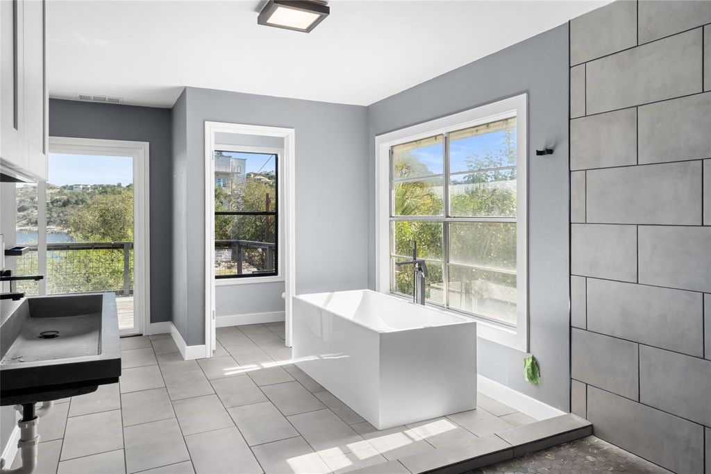 Discover the perfect blend of location and relaxed lakefront living in this completely reimagined lakefront home. Nestled on just over an acre and framed by majestic Live Oak trees, this property offers over 240 feet of pristine Lake Travis waterfront in a peaceful cove "” ideal for fishing, floating, or simply unwinding by the water. Enjoy breathtaking views from both the upper and lower decks, or take a gentle stroll down the sloping path to the shoreline. Outside, the pool invites you to cool off or lounge lakeside in true resort style. Recently renovated, this home blends thoughtful design, refined finishes, and timeless Hill Country character. The property features irrigation from the lake as well as a reliable private water well, offering the best of both worlds. Just ten minutes from local restaurants and grocery stores and close to all area schools, this residence is perfect for full-time living or a weekend retreat.