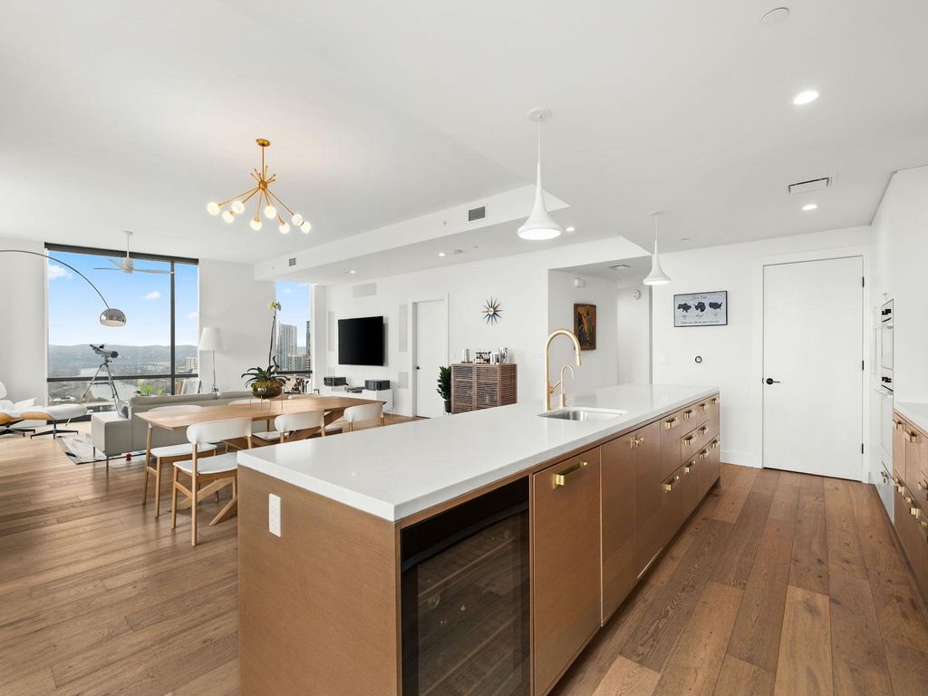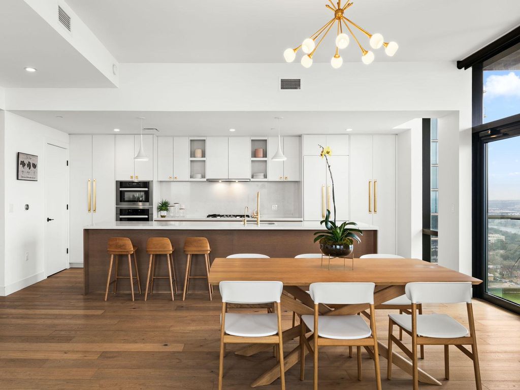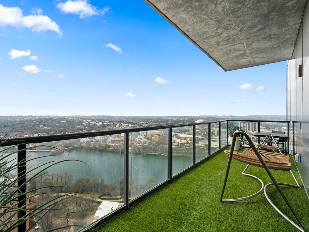 Experience sophistication and luxury living with this exceptional 3-bedroom, 3-bathroom residence in the highly sought-after Rainey Street District of downtown Austin. Located in a prestigious building at 70 Rainey, this stunning home boasts high-end finishes and custom details throughout. Upon entry, you are greeted by beautiful European wide-plank white oak flooring and floor-to-ceiling soundproof paneled windows, showcasing panoramic views of Lady Bird Lake and the iconic Austin skyline. The open-concept floor plan seamlessly integrates the living, dining, and kitchen areas, creating a perfect space for entertaining. The kitchen features top-of-the-line Miele appliances, quartz countertops, contemporary finishes, and a spacious center island. The primary suite offers a serene retreat with floor-to-ceiling windows and a spa-inspired bathroom complete with dual sinks, a soaking tub, a glass-enclosed shower with marble tile, and an expansive walk-in closet with custom built-ins. The guest bedroom also includes an en-suite bathroom and captures breathtaking lake views. A versatile third bedroom/office offers an additional bathroom, ideal for a home office, gym, or extra living space. This residence also includes an in-unit laundry room with built-in storage, maximizing convenience and organization. Residents can enjoy a wealth of amenities, including an infinity pool with panoramic lake views, multiple sundecks, covered outdoor dining areas with TVs and grills, lush landscaping, a dog park, and a fire pit. Indoors, you'll find lounges, dining spaces, a theater room, and a fitness center. Located near the Anne and Roy Butler Hike-and-Bike trail, as well as fabulous restaurants, shops, and the vibrant nightlife of Austin, this condo offers an unparalleled lifestyle in one of the city's most desirable locations.