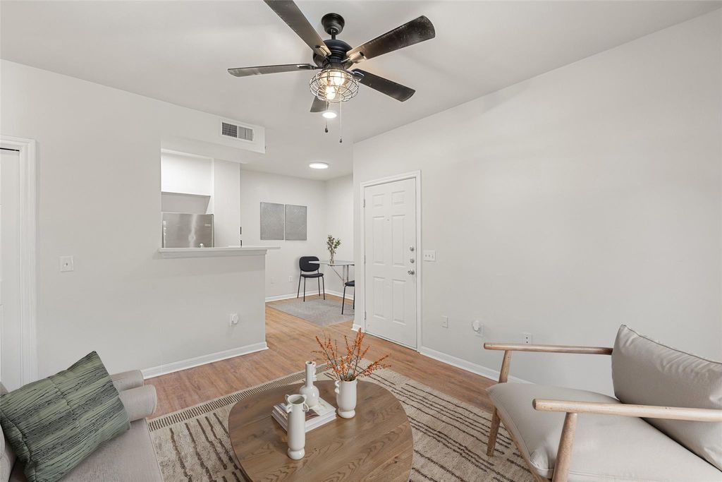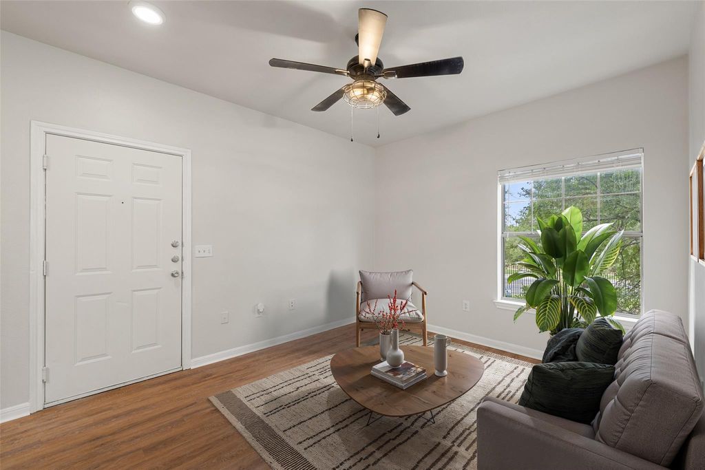 Fully updated and move-in ready, this beautifully renovated second-floor condo in North Austin's gated Stoneleigh community offers modern style, comfort, and an unbeatable location just minutes from The Domain and Mopac. Step inside to discover a bright and inviting space featuring vinyl plank flooring replaced in June 2025, updated countertops, a freshly repainted interior, and a recently upgraded HVAC system for year-round comfort. The open-concept living area includes a versatile flex space"”perfect for a home office or reading nook"”while large windows fill the home with natural light. The spacious bedroom offers an oversized walk-in closet, and the private, covered balcony includes an additional storage closet for added convenience. Enjoy a full suite of resort-style amenities: a sparkling pool, modern fitness center, elegant clubhouse, business center, and dog park"”all in a well-maintained community with 24-hour gated access and onsite management. A dedicated carport is also included. Ideally located near major employers like Facebook, Amazon, and VRBO, and just moments from Q2 Stadium, Walnut Creek Greenbelt, and Austin's best shopping and dining, this condo delivers the perfect blend of modern living and everyday convenience.