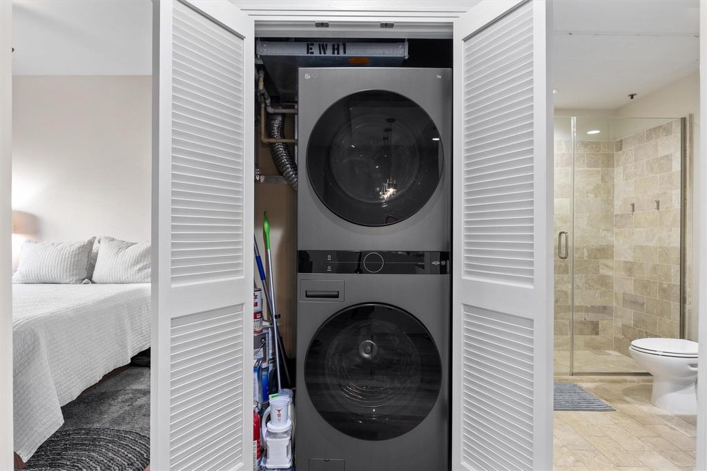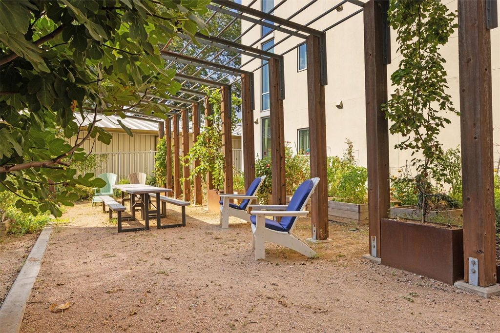 The Jewel at Barton Place earns its name the moment you step inside. The heart of this home "” a brilliantly redesigned, brass-accented kitchen "” is the showpiece that sets this residence apart. A modern gem, it anchors the entire living space with warmth, sophistication, and a level of detail rarely found at this price point. Located just steps from the Butler Hike and Bike Trail, this 2-bed, 2-bath condo delivers the kind of Austin living people wish for: a private perch surrounded by trees with the city's best dining and entertainment minutes away. A coveted east-facing balcony tucked into the canopy sets the tone. From the sun-drenched living room, views of the trail and treetops frame the warm, inviting space. Inside, every detail feels intentional, from smart-home lighting to contemporary fixtures and updated hardwood-style LVP flooring. The kitchen features a waterfall quartz island with deep seating, professionally refinished two-tone cabinetry, brass hardware, a metallic honeycomb backsplash, under-cabinet lighting, a Kraus Workstation sink, and stainless appliances, including a gas range and vent hood. The dining and living areas flow easily around the island, creating a bright, social layout. A newer stacked LG washer and dryer and an updated water heater add everyday convenience. The primary suite feels calm and welcoming with designer paint tones, blackout roller shades, and an ensuite bath with a dual vanity, walk-in shower, and deep soaking tub. The second bedroom works perfectly for guests or a home office. Barton Place elevates daily living with a saltwater pool, fitness center, community garden, rooftop terraces, concierge, and secure underground parking (two large side-by-side spots). The guest suite and gym are conveniently one flight down, and an Urban Storage Unit is included. Modern, connected, and surrounded by nature "” The Jewel at Barton Place is a rare find above the trees.