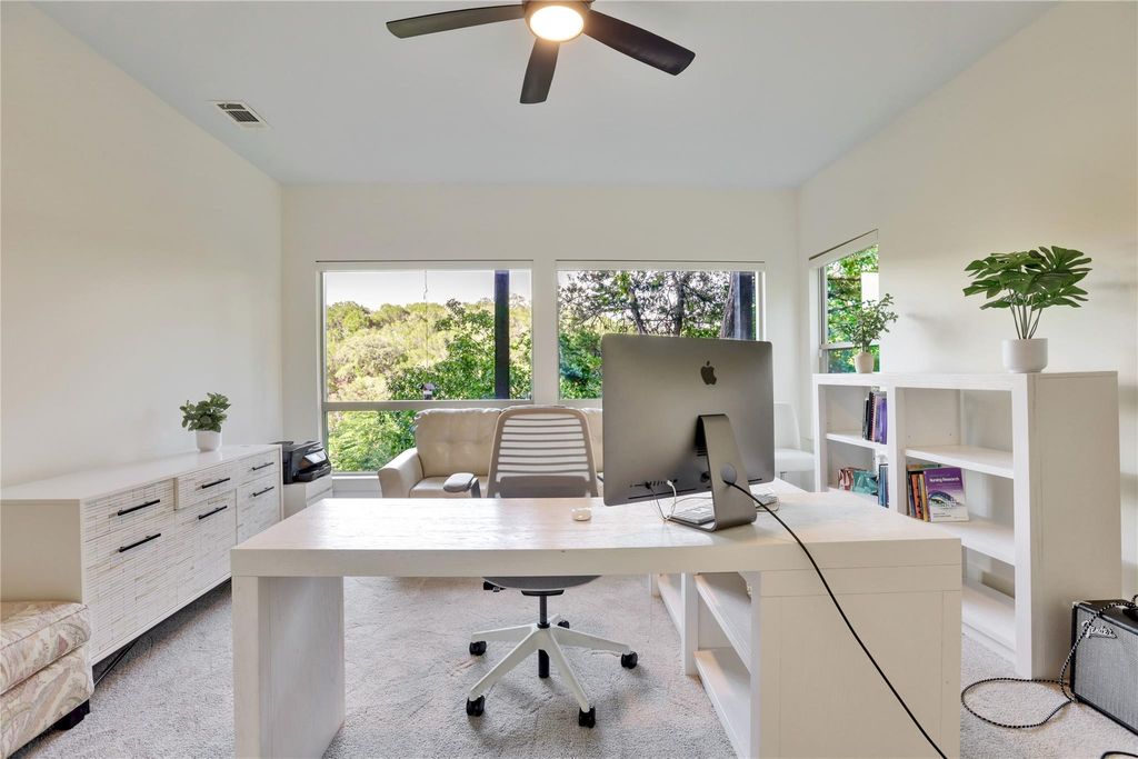 Please reach out ASAP with any interest. This listing may disappear soon, as seller considers leasing. This beautifully designed modern home offers breathtaking Hill Country views throughout. Thoughtfully laid out with an open-concept living and dining area, plus a separate guest entertainment room"”all equipped with built-in surround sound"”it's perfectly suited for both relaxed living and stylish entertaining. The chef's kitchen is a true standout, featuring generous counter space, a center island, and a walk-in pantry. Soaring ceilings, oversized windows with custom shades, abundant closet space, and elegant built-in cabinetry enhance both comfort and function. The spacious main suite offers direct deck access, and a spa-inspired ensuite complete with a soaking tub, walk-in rain shower, and a fully customized walk-in closet. The finished garage, outfitted with a mini-split A/C system, is ideal for a home gym, studio, or workshop. Step outside to two expansive decks with panoramic canyon views"”an ideal setting for everything from peaceful mornings to sunset entertaining. Located just a 5-minute walk to the neighborhood's lakeside park and boat ramp, and close to scenic hiking trails, a children's park, and a members-only pool (with this year's membership already paid). Zoned to exemplary Lake Travis ISD and benefiting from a low tax rate, this home captures the essence of Hill Country living. This inspiring space is a must-see!